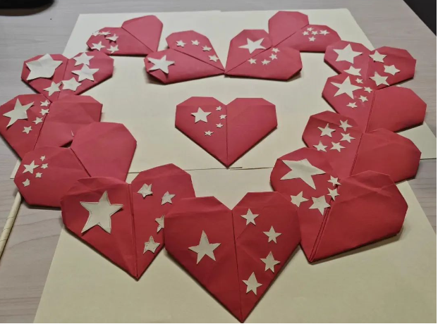 志愿者们组织小朋友一起通过手工折纸的方式来制作爱心和五角星。制作过程中,志愿者还给小朋友们讲了国庆节的由来以及近现代革命先辈的奋斗故事,那些艰苦的岁月让小朋友们更加珍惜现在的幸福生活。小朋友们纷纷表示,一定要好好学习,将来为祖国贡献自己的力量。
