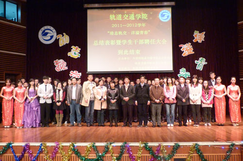 为表彰学院先进学生,树立榜样模范,在全院营造良好的全员育人氛围,轨道交通学院于11月19日举行“励志轨交 洋溢青春”2011--2012学年总结表彰暨学生干部聘任大会。学生处、团委,和学院师生共同参加了大会。