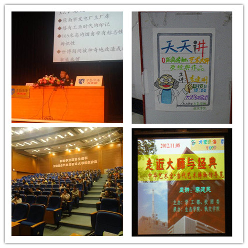 2012年11月8日晚,材料学院党总支书记、校艺术团指导老师李建民在学生活动中心带来了一场探讨美的艺术宴会——《零距离接触美术大师与经典作品》。据悉此次讲座由校团委主办,生态学院和轨交学院共同承办。