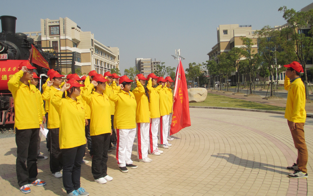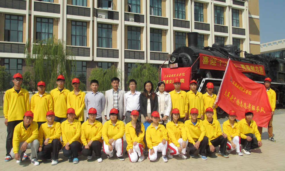 2012年10月18日,轨道交通学院火车头广场志愿者队全体队员齐集火车头广场,举行“喜迎十八大,青春献志愿”志愿者队迎新仪式暨“我为更名做贡献”校园清洁活动,学院领导、辅导员、新老志愿者代表出席此次仪式。