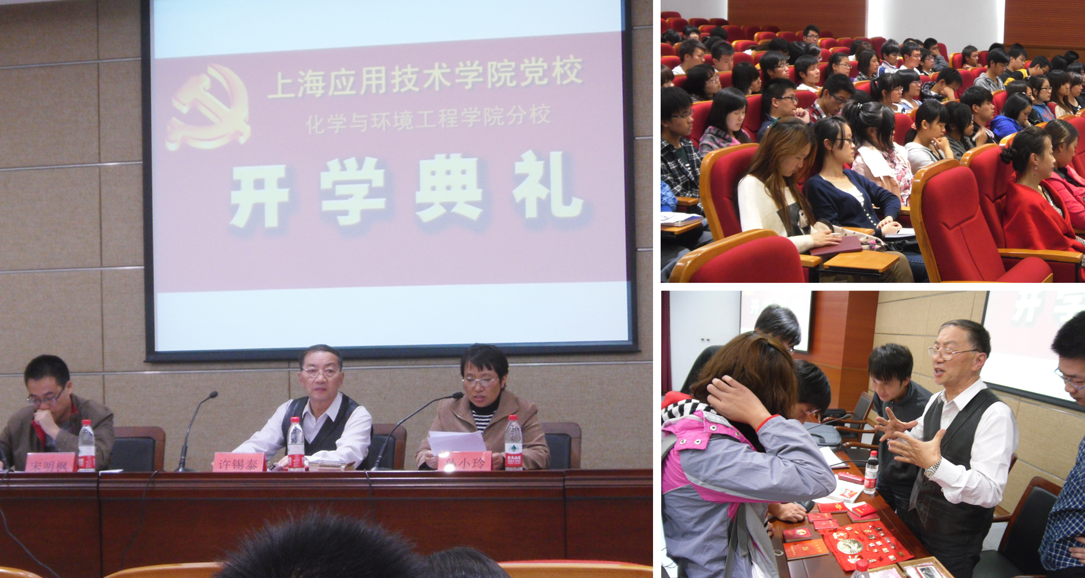 2012年10月18日晚18:00,上海应用技术学院第24期党校化学与环境工程学院分校第一场专题报告暨开学典礼在奉贤校区图书馆B101报告厅顺利举行。化学与环境工程学院党总支书记孙小玲、化工学院特聘组织员许锡泰出席本次开班仪式,党总支副书记、副院长宋明枫主持。