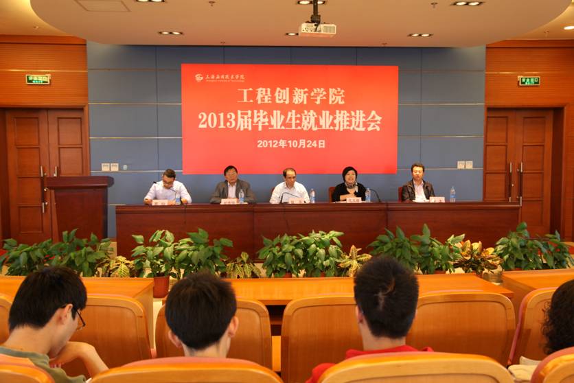 2012年10月24日下午,工程创新学院召开2013届毕业生就业推进会。校学生工作部(处)副部(处)长翁德明、工程创新学院常务副院长钱平、工程创新学院党总支书记范文蓓、工程创新学院副院长韩生以及全体2009级学生及部分学生家长出席本次会议,毕业班辅导员葛翔主持会议。