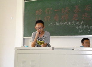 9月2号下午2:00外国语学院在在二教E201正式举办2012级新生老生交流会,新生辅导员以及学生会和高年级班级学生干部出席交流会。老生们从入学、学习、生活、活动、考研等各个方面给予新生详细的经验和方法。在提问环节,热心又经验丰富的学长学姐们对新生的各种提问都给与了风趣、详细的解答。