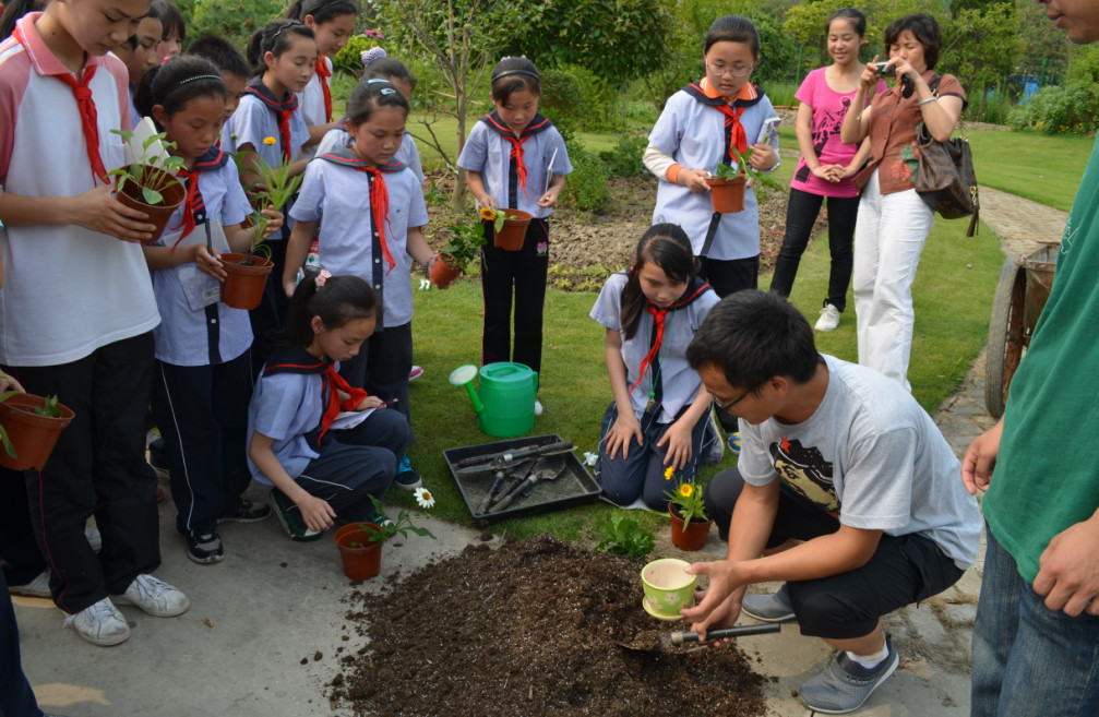志愿者带领着小朋友们参观了我校活动中心、食堂和图书馆等重要地标,介绍了我校的历史、发展和现状等。来到生态学院植物园,小朋友们兴致高昂,志愿者们详细介绍各种植物,讲解了植物种植的基本知识,指导他们动手在花盆中填上泥炭土、栽下植物、浇水。在这过程中,小朋友们兴致冲冲,虽然脏了手,但脸上挂着满足的笑容。