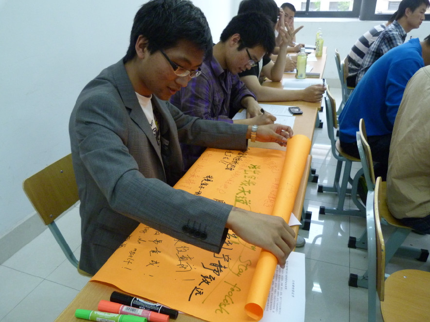毕业班辅导员首先带领大家回顾了入校以来学习、生活各方面的历程,一张张温馨珍贵的照片让大家沉浸在对母亲深深的眷恋和对自己大学生活美好的回味中。学生党支部向大家发起了文明离校的倡议,字字真情、句句诚恳,希望大家作为轨道交通学院第一届毕业生,切实做到尽心尽力、善始善终,并继续严以律己,为学弟学妹们做表率。