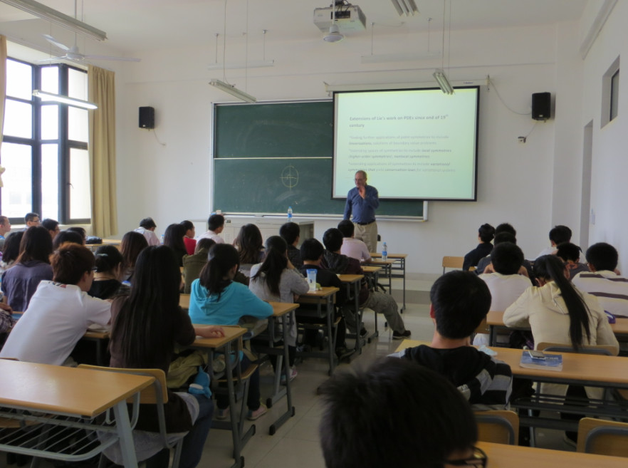 5月8日下午,加拿大UBC大学数学系GeorgeBluman教授应理学院段俊生教授邀请至我校作一场关于“数学物理方程中的对称方法”的专题讲座,理学院院长许庆祥及部分师生代表们聆听了此次讲座。