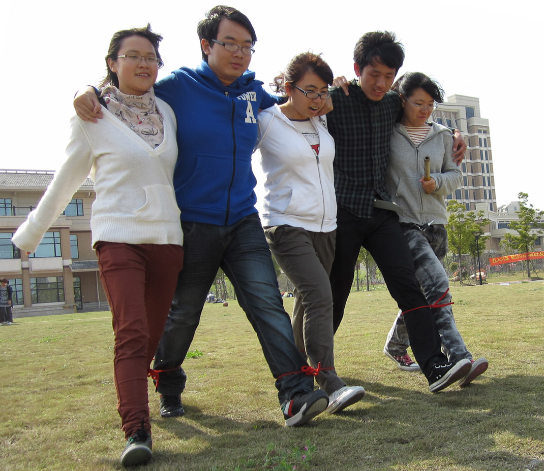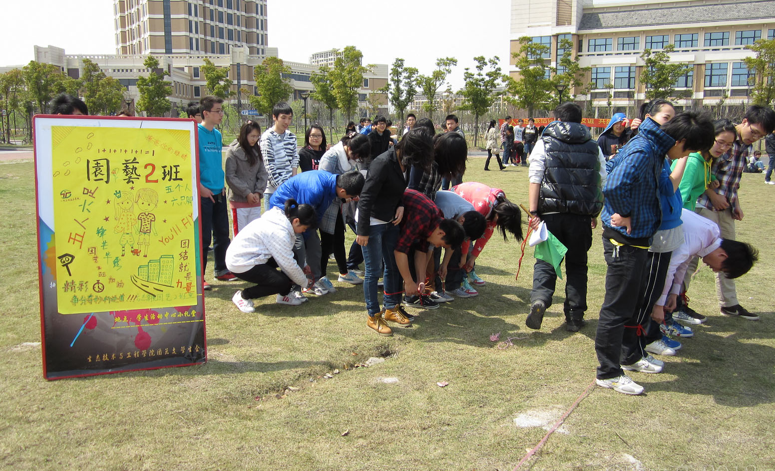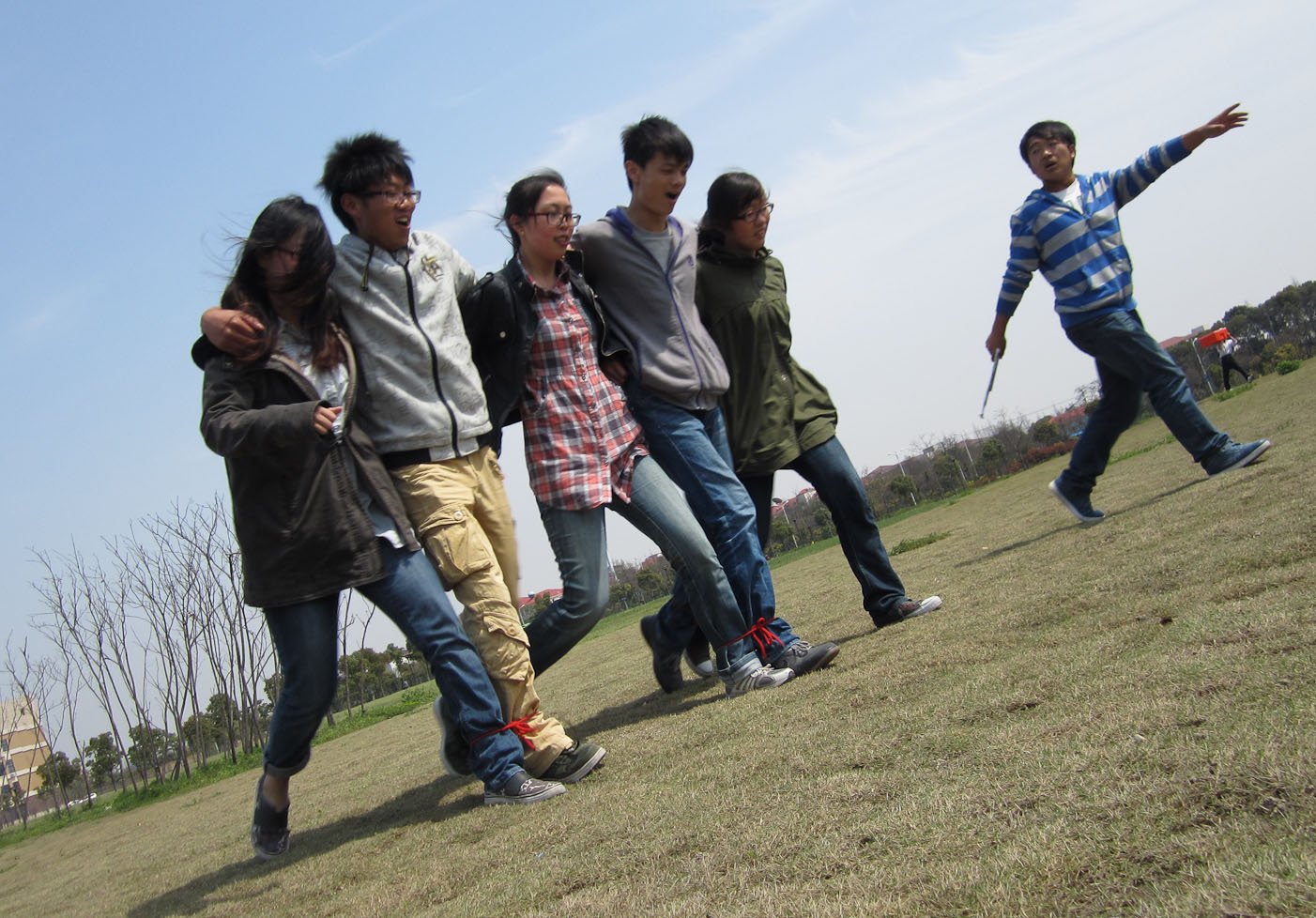 2012年4月6号下午13:00点在上海应用技术学院三食堂东侧的草坪上,生态技术与工程学院大一与大二的同学展开了五人六足的班级接力竞赛活动。学院许多老师也参与其中。