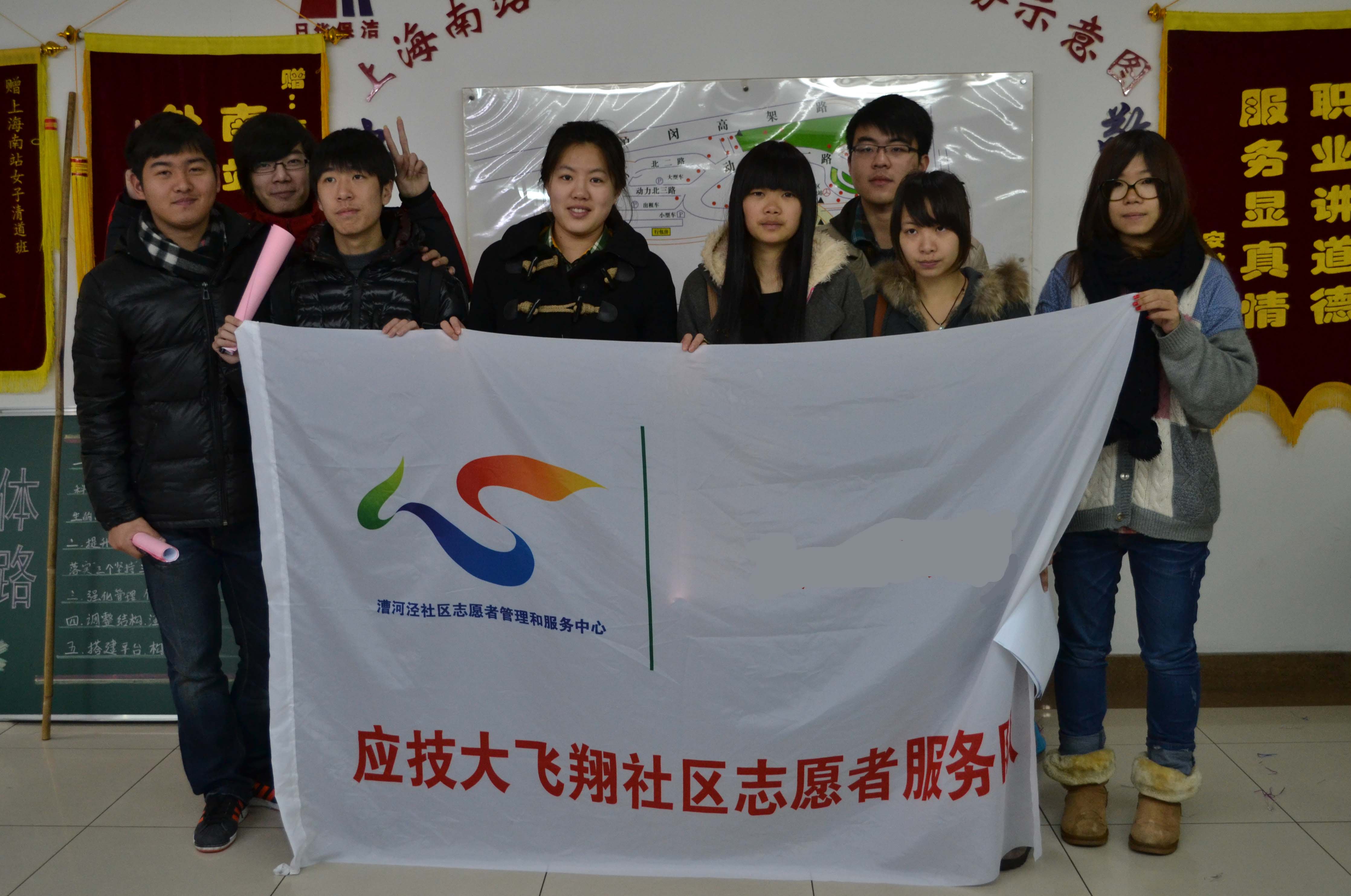 2012年3月3日我校艺术与设计学院“飞翔”志愿者参加了由漕河泾社区举行的优秀志愿者组织的授旗仪式。