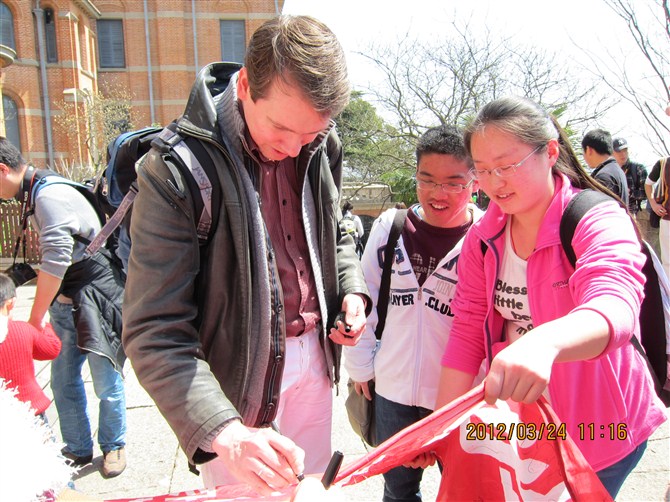 上午八点,同学们前往佘山,按照负责人安排分成各个小组,每组十人左右由组长带领上山开展活动。同学们首先向过往的游客宣传低碳生活及我们可以为环保所做的事,并号召各位游客在横幅上留下自己的名字,包括许多外国友人在内的游客们纷纷响应,对此次活动表示了肯定和支持,鼓励同学们一直坚持下去。