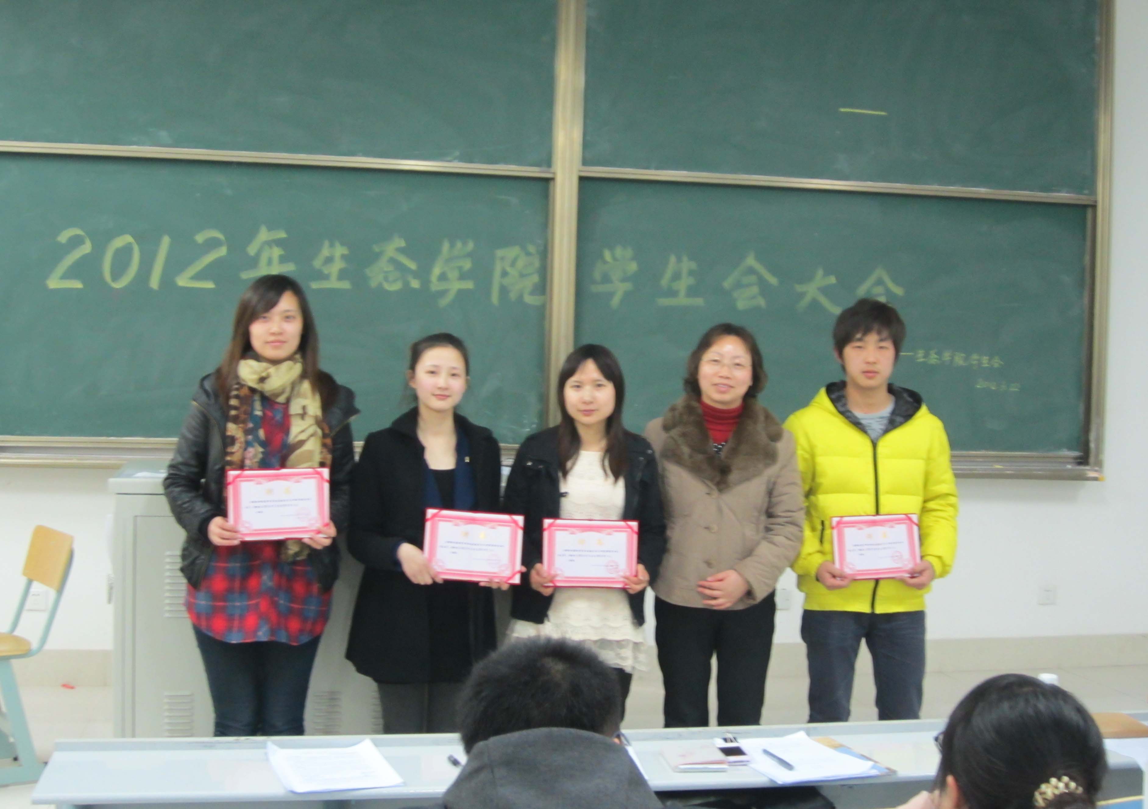 2012年3月22日,“重添新丁”后的生态学院第四届全员大会在一教D201举行,虽是姗姗来迟 ,但整个过程确是处于温馨与积极的氛围中。生态学院副院长陈红老师、团总支书记王彩连老师出席了会议。