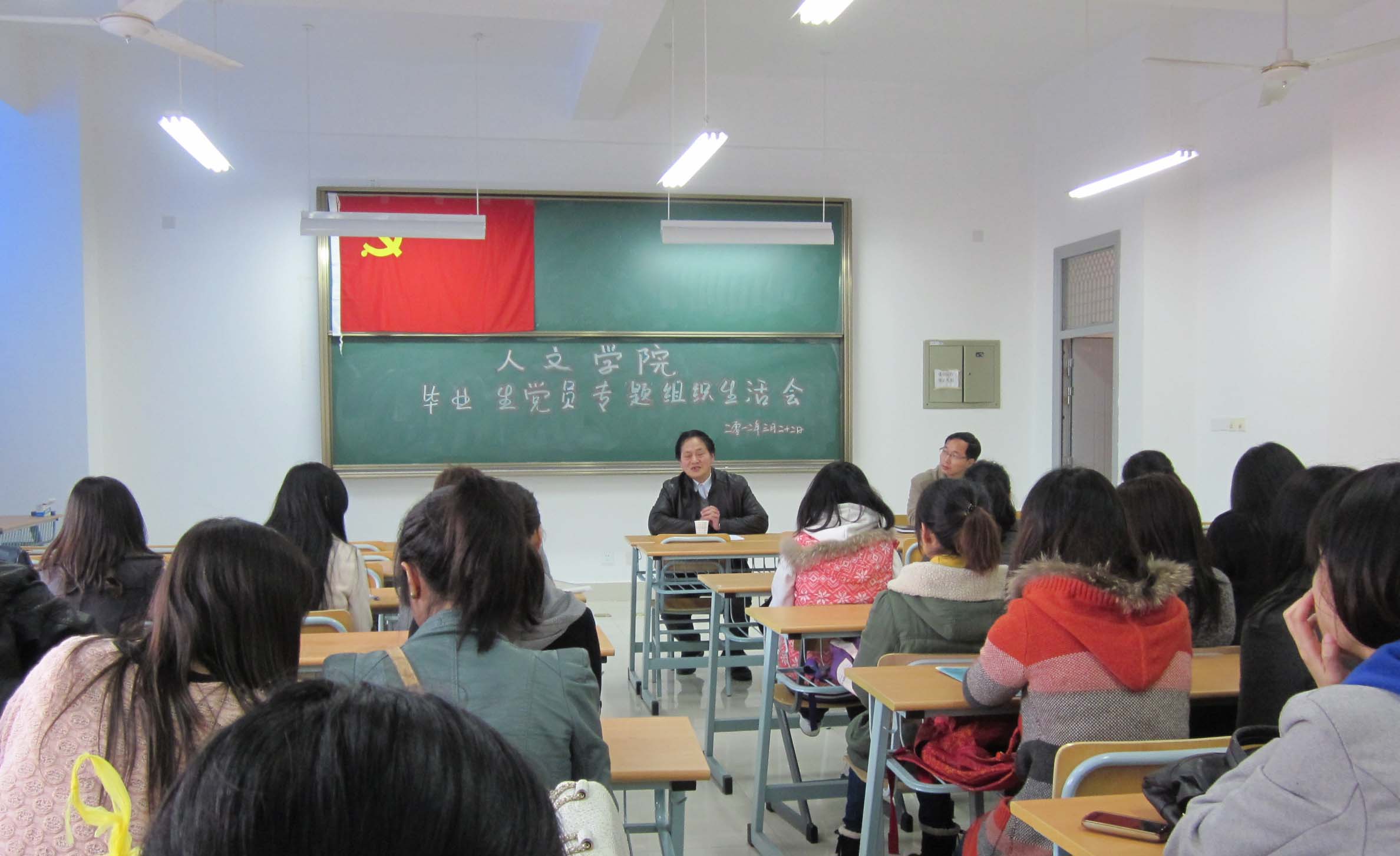 为引导更多毕业生党员在新的工作岗位上更好的肩负起党员责任,继续发挥好先锋模范带头作用。人文学院党总支于2012年3月22日在第五学科楼B101教室召开了毕业生党员专题组织生活会。人文学院党总支书记朱贵平老师、09级学生党支部书记贾慧老师、08级36名毕业生党员参与了生活会。会议由08级辅导员、学生党支部书记陈杰老师主持。