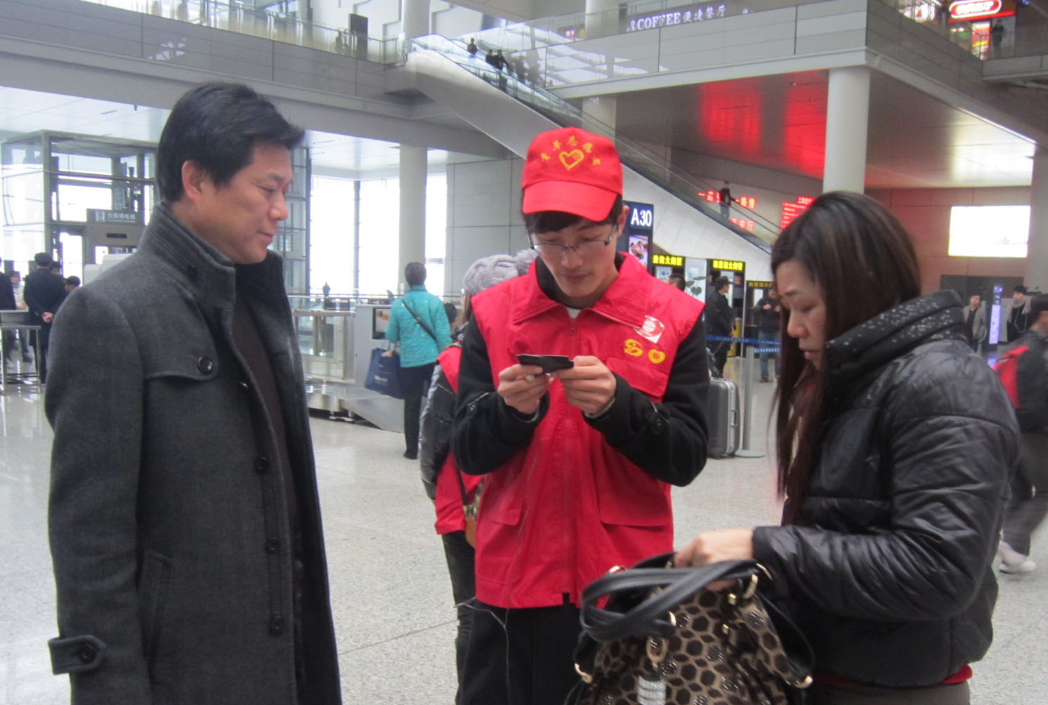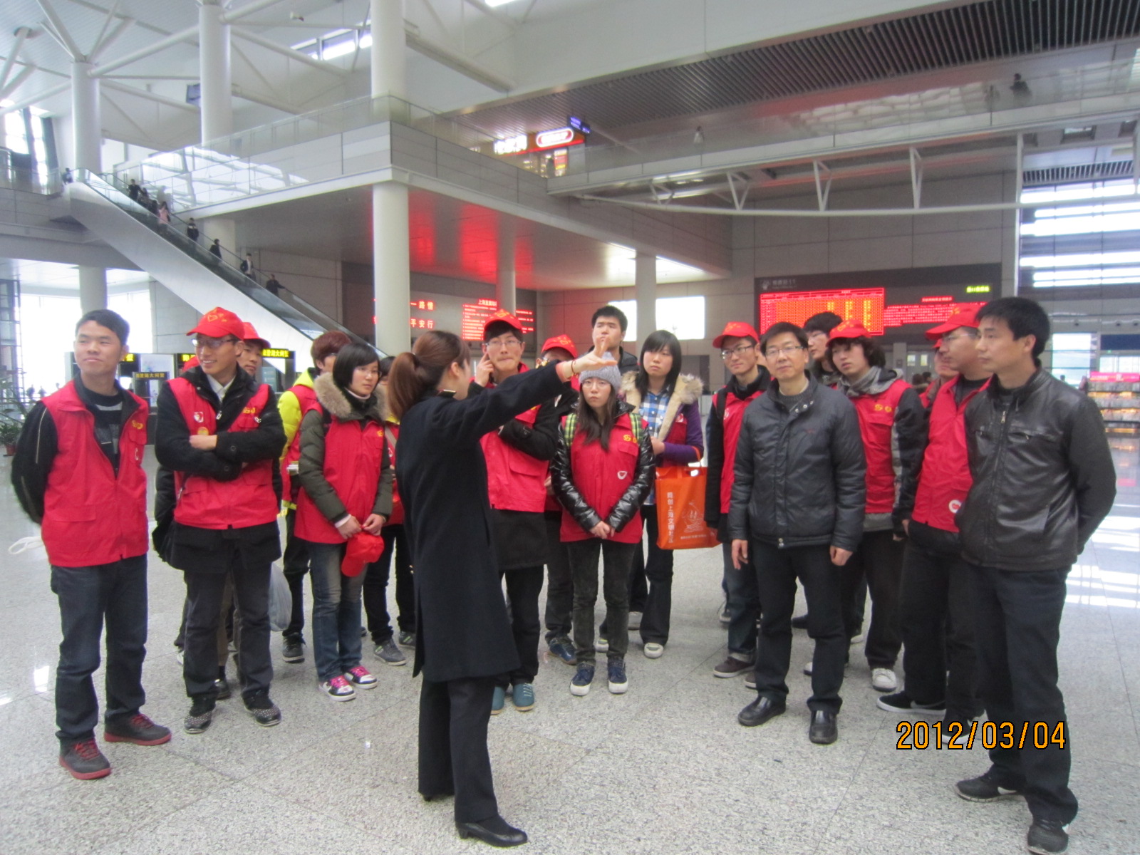 2012年3月4日中午,上海应用技术学院轨道交通学院“雷厉锋行”——学雷锋系列活动的志愿者们奔赴上海虹桥火车站,开展“服务虹桥”的志愿服务,共23名通号技术、车辆工程、轨道工程、交通工程专业学生参加了此次活动。