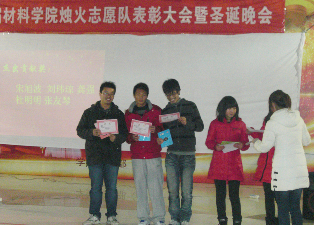 2011年12月25日晚18:30,“上海应用技术学院材料学院第一届志愿队表彰大会暨圣诞晚会”成功在活动中心一楼大厅举办。