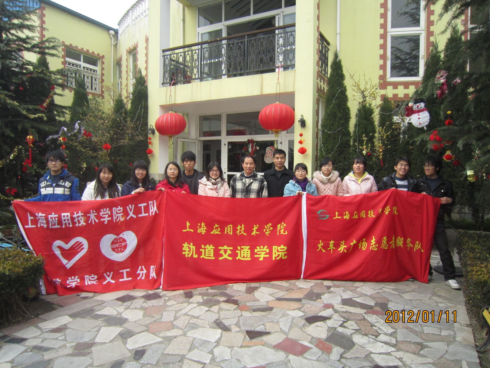 2012年1月11日,在轨道交通学院学生工作负责人王乐全、团总支书记陈方敏带领下,我院志愿者服务队、义工队一行11人,冒着寒风前往上海广慈孤残福利院给他们捐助物品并开展志愿服务。
