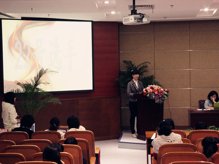2011年11月30日晚18:00在图书馆B101,由学工部校团委主办、外国语学院承办的第八届外语节“智慧交锋,才情碰撞”英语演讲比赛如期举行。现场担任评委的是来自外国语学院的专业教师。本次比赛作为第八届外语节的系列活动,吸引了来自各学院的24位参赛选手。