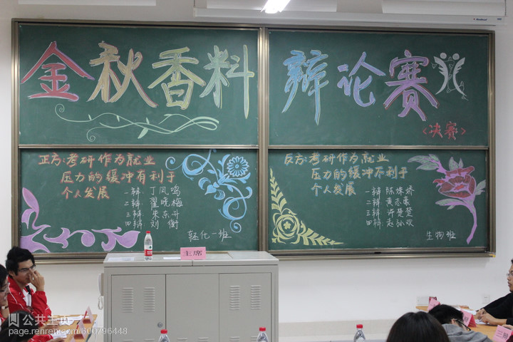 由香料学院分团委主办的金秋·香料辩论赛决赛于2011年11月2日晚20:45在第一教学楼B105举行。双方辩手就“考研作为就业压力的缓冲是否有利于人生发展”这一问题展开了激烈的辩论。