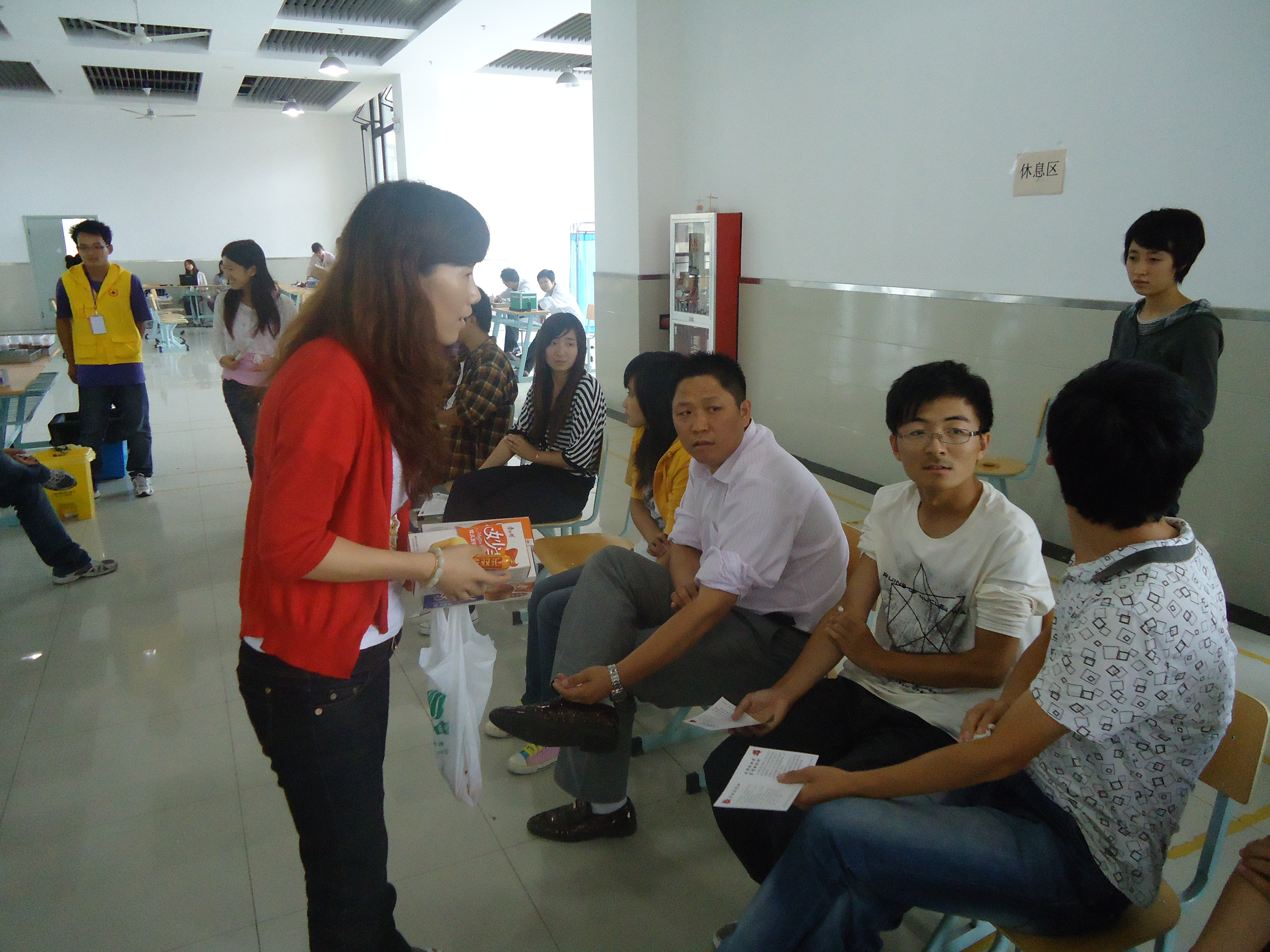 在志愿者培训讲座开始的同时,理学院的师生们也在积极的参加到献血活动中。理学院直属党支部书记王竑、工会主席、学生工作负责人等也早早到场,为献血的师生们加油鼓劲,并送上营养品,缓解献血者的紧张感觉,那些亲切而关怀的话语,亲手为献血者喂上红糖水的行为,深深地打动了献血的师生和参与志愿者服务的“绿精灵”们。