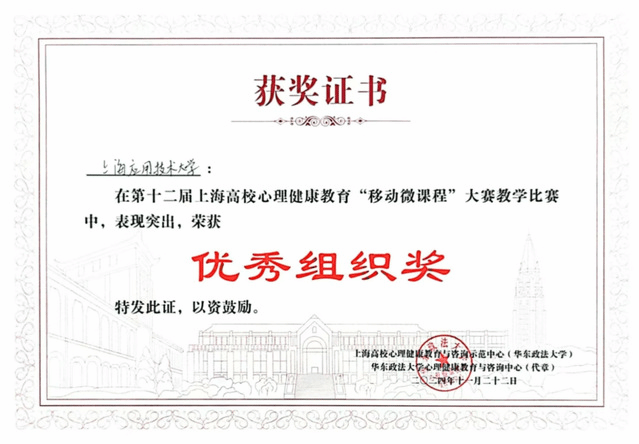 11月22日,2024年上海高校心理健康教育展示暨第十二届移动微课程大赛决赛在华东政法大学举行。学校选送的选手,经济与管理学院彭烨老师主讲的《大学生“精神内耗”自救指南》表现出色,荣获三等奖,学校获“优秀组织奖”。