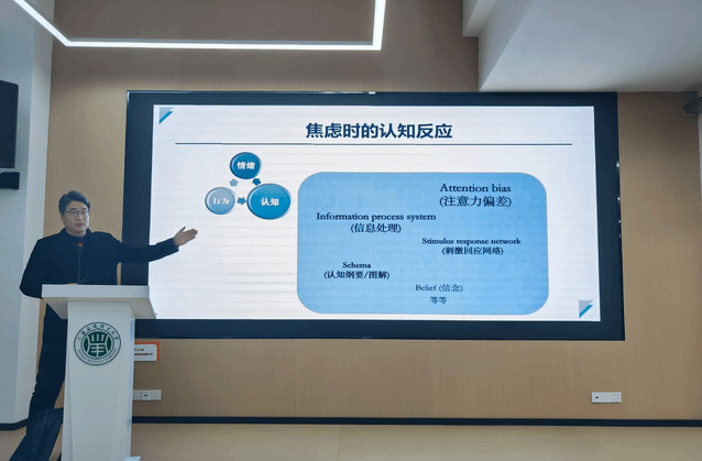 讲座以“你是否焦虑得头发都掉了?”这一课前互动拉开序幕,并围绕“焦虑时会发生什么?”、“如何看待焦虑?”、“如何应对焦虑?”这三方面内容展开。马前广老师详细解释了焦虑来临时人们可能产生的生理、认知和行为反应,如战逃反应、认知曲解、强迫行为等,并从精神分析视角阐述了焦虑产生的原因、本质和应对的心理防御机制。在谈到如何和焦虑共处时,马前广老师总结出和焦虑和解的三部曲:第一,要学会自我探索,区别焦虑与焦虑症的不同症状,保持敏锐的自我觉察力;第二,要时常领悟,运用利他、幽默、升华等恰当的防御机制应对焦虑;第三,要积极行动,采用正念冥想、运动锻炼等方式进行自我调适。