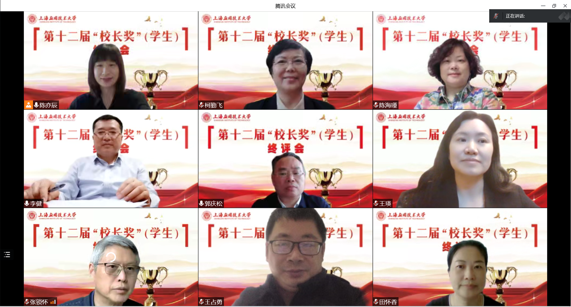 5月20日,学校第十二届“校长奖”(学生)终评会在云端举行。校党委书记郭庆松,校党委副书记、校长柯勤飞,校党委副书记、副校长王瑛,校党委副书记陈海瑾,校党委副书记、纪委书记李健,校党委常委、副校长张锁怀、副校长毛祥东及“校长奖”评审委员会评委出席会议。各学院(部)学生工作负责人、辅导员及学生共2000余人通过直播观摩本次活动。