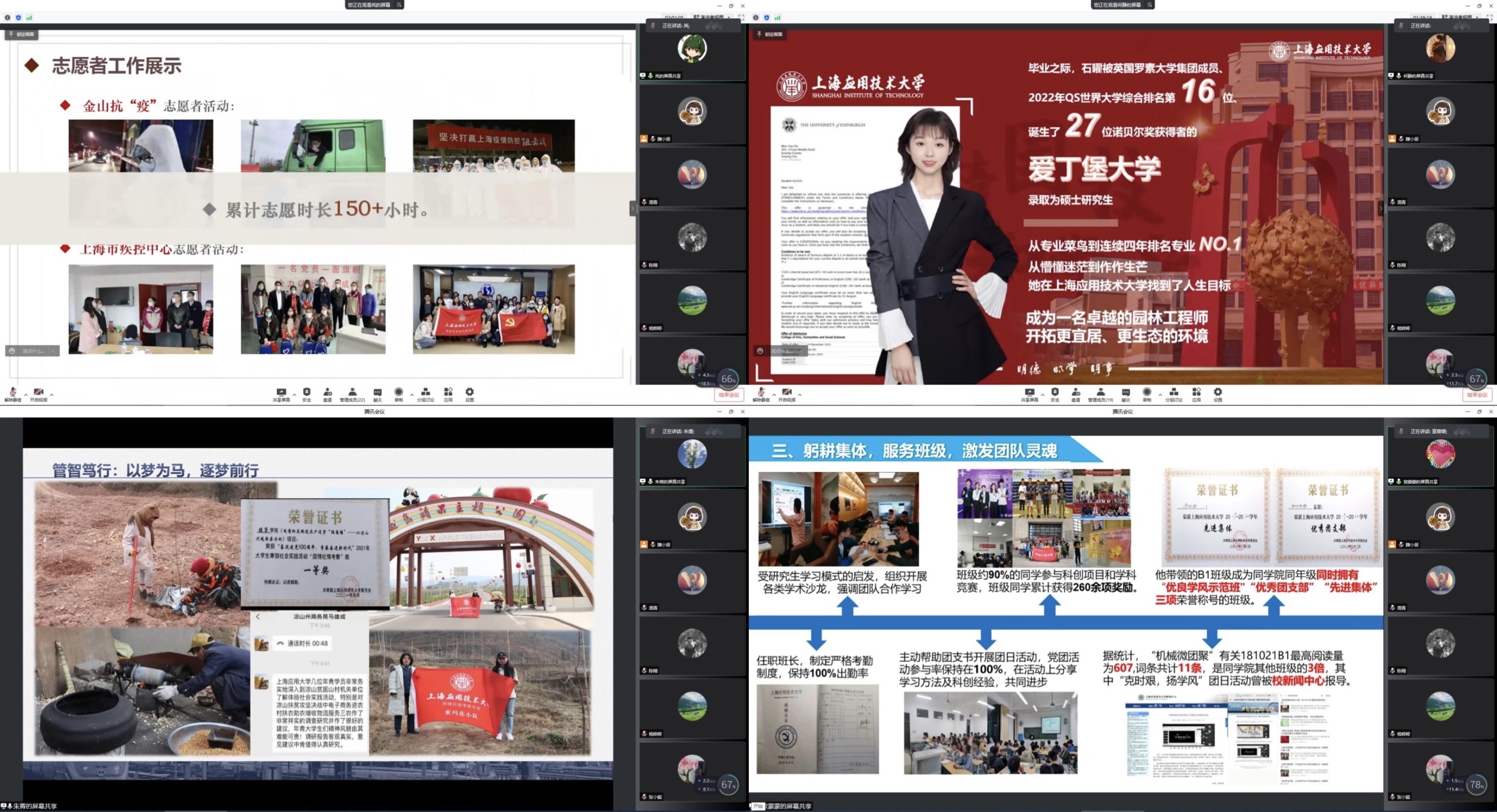 本届“校长奖”(学生)自3月1日正式启动以来,经过充分宣传与组织动员,得到全校范围内的广泛关注,并通过学生申报和各学院选拔,最终有19名候选人参与出品会。在线上ppt介绍、投票后,最终评选出机械工程学院荆一鸣、电气与电子工程学院张于波、生态技术与工程学院石曜、艺术与设计学院顾爱红、计算机科学与信息工程学院李兆瑞、材料科学与工程学院李林青、城市建设与安全工程学院张围、经济与管理学院蒲诗雨、香料香精化妆品学部范霈珺、理学院兰雨洁等10名优秀同学进入复评。