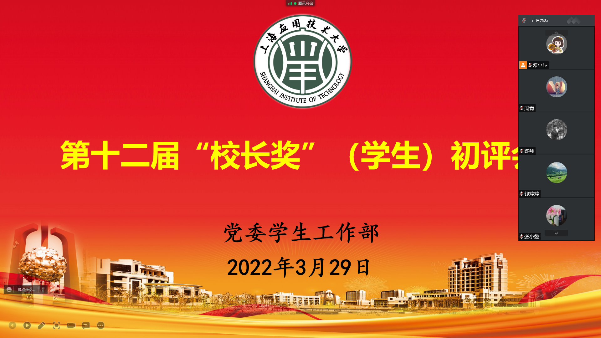 为弘扬我校“明德、明学、明事”的校训精神,充分发挥榜样的力量引领学生共同进步、营造优良学风,3月29日下午,党委学生工作部组织第十二届“校长奖”(学生)线上初评会,党委学生工作部、校团委及各学院学生工作负责人参加初评会。