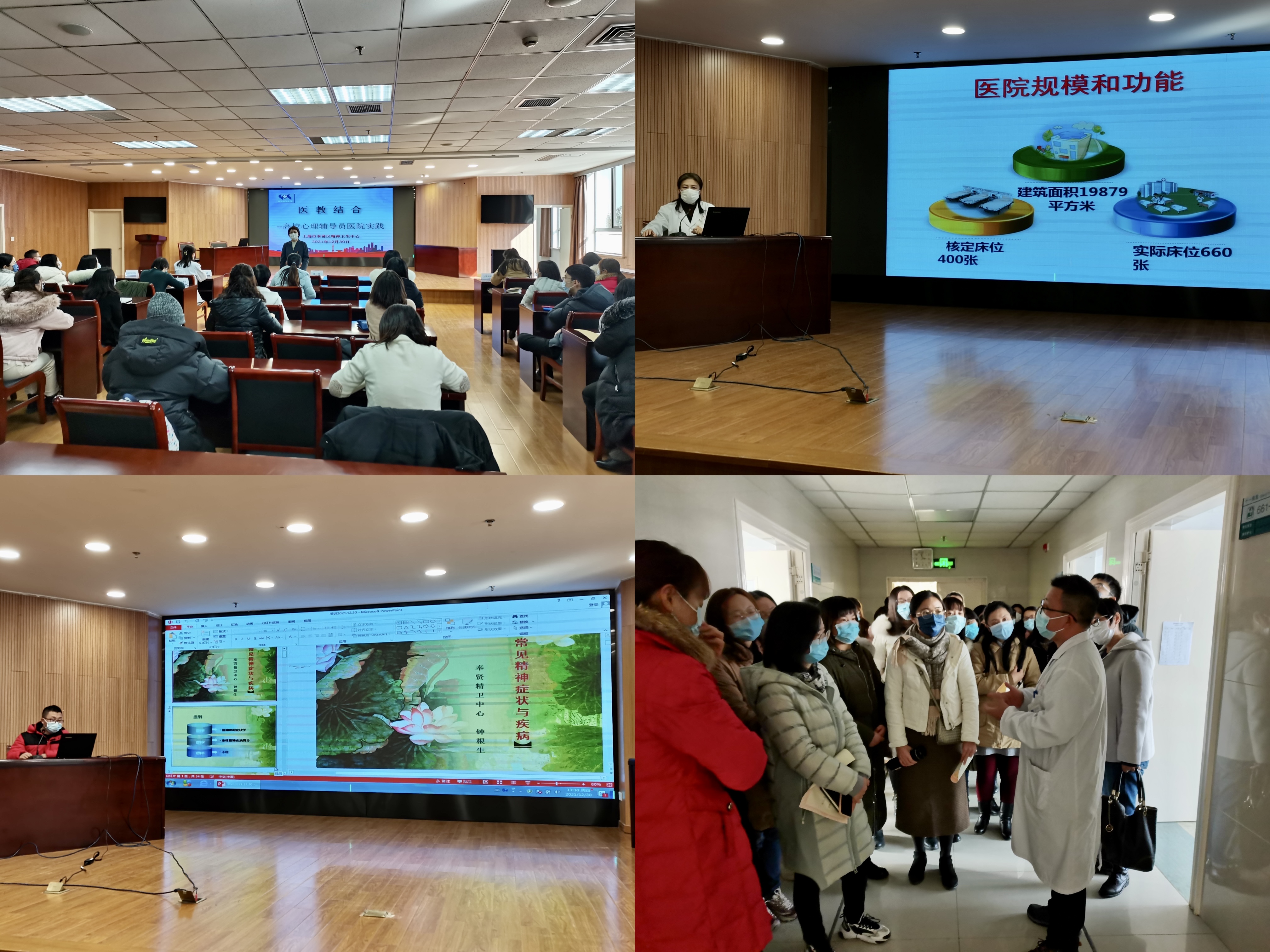 奉贤区精神卫生中心钟根生医师进行了《常见精神症状与疾病》的培训,强调精神疾病重在早期识别、长期治疗、避免复发。培训结束后全体人员进入住院区进行见习。咨询师跟随主治医师观摩学习会诊,了解住院病人的生活环境和治疗安排。此次见习加深了对患者症状的理解,巩固了精神疾病相关理论学习成果,进一步提升了咨询师的心理健康服务水平。