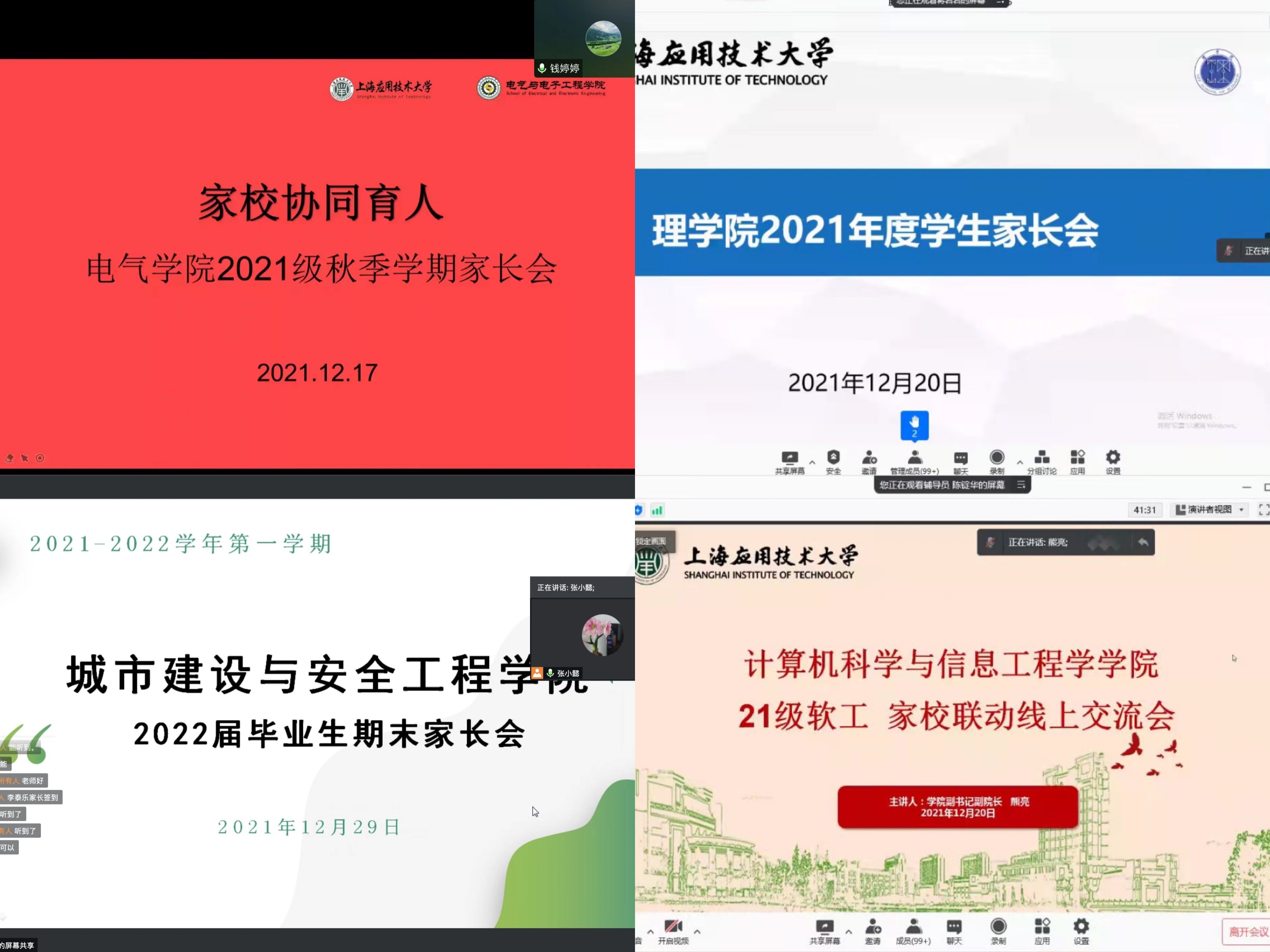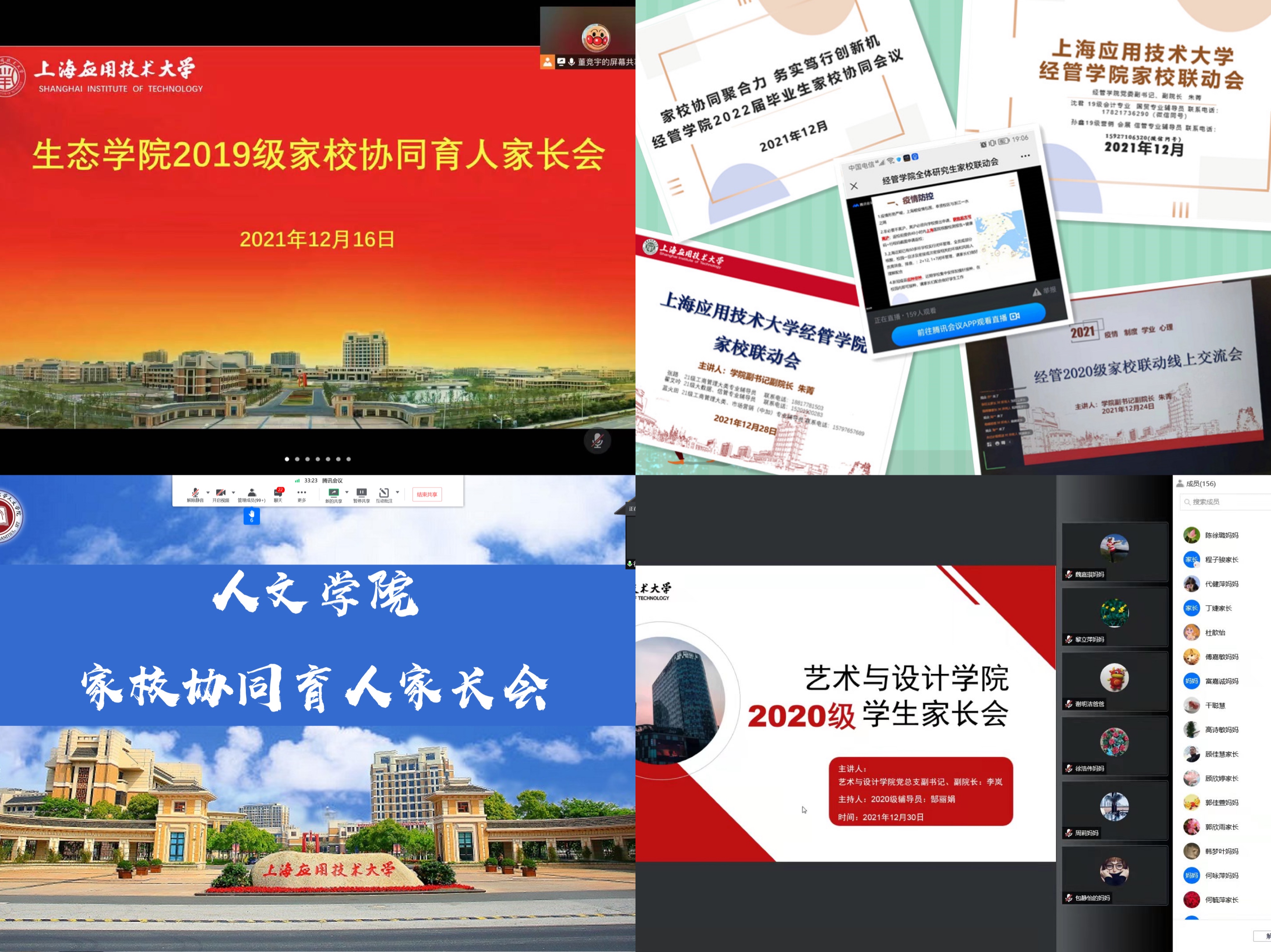 党委学生工作部、各学院(部)主动承担在家校协同育人过程中主导者的工作,积极探索家校协同教育的实施方案。12月,党委学生工作部组织大学生心理健康教育教师和辅导员面向全体家长开讲“家校协同育人视野下的大学生心理健康教育及心理危机干预”,通过讲解心理健康知识以及心理危机预防常识,引导家长树立正确教育观念,以健康和谐的家庭环境影响学生,进一步提升识别应对子女心理问题和危机干预的意识与能力;面对家长提出的意见建议,收集整理并妥善解决处理。各学院(部)共开展线上家长会近百场,向家长介绍学校的育人理念、学生的培养方案以及学生未来的发展方向与职业前景。