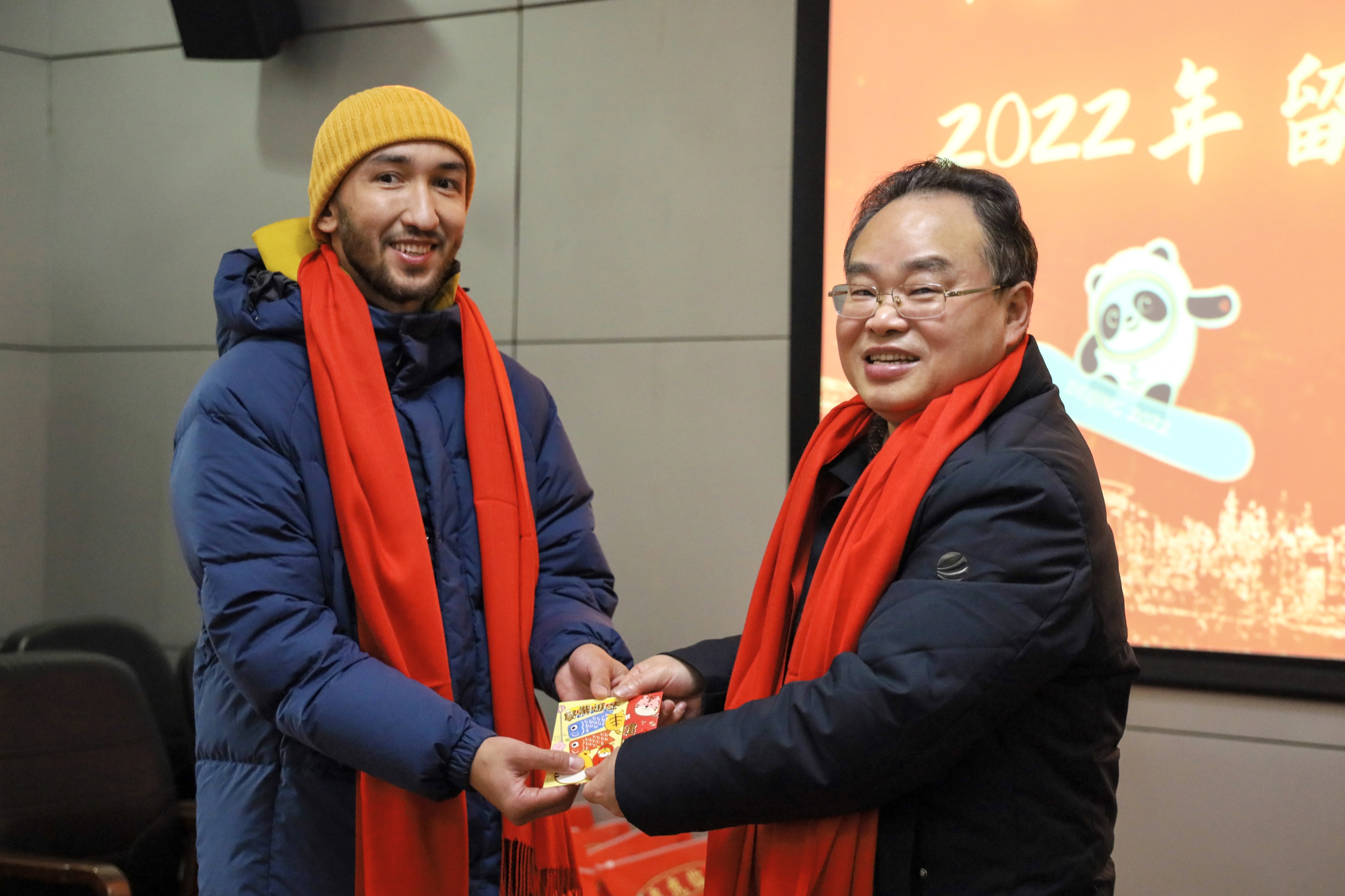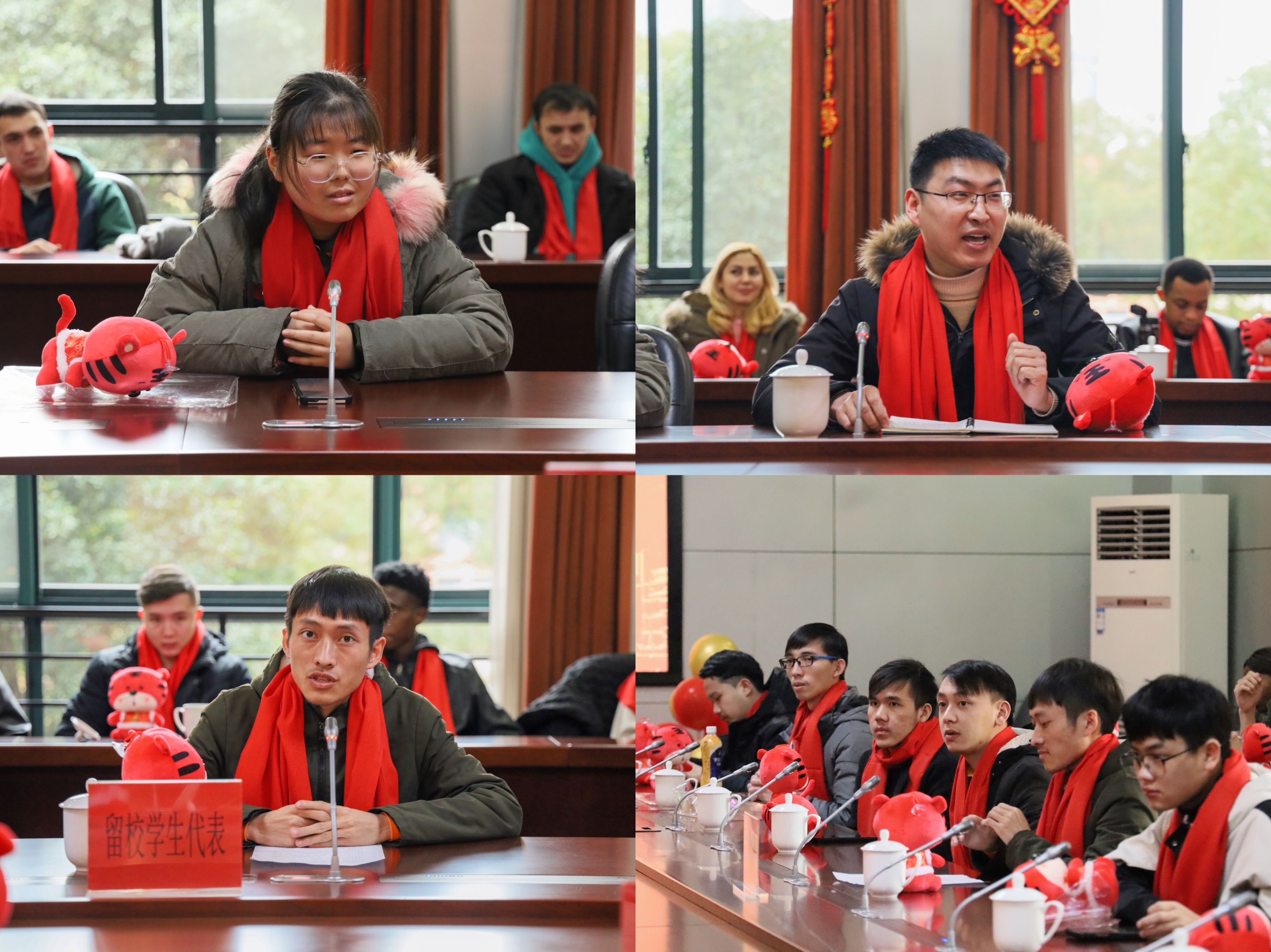 陈青长介绍了留学生留校工作相关情况,嘱咐同学们安心留在学校,利用寒假时间多学习、多锻炼身体,注意各方面安全,经常和父母家人联系,让家人放心。