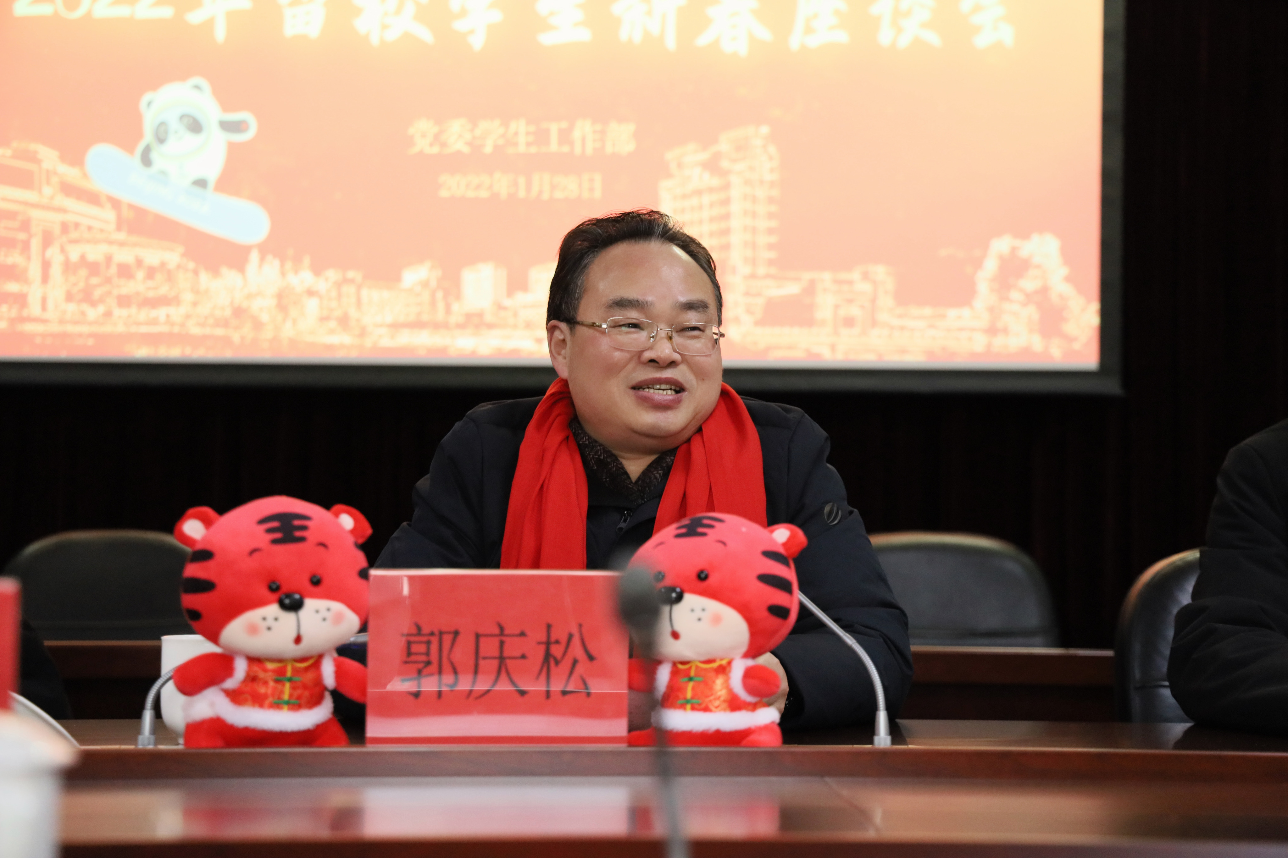 为严格落实全国教育系统寒假疫情防控和留校学生生活保障工作,关心关爱寒假留校学生的学习生活。1月28日,学校举行“申情‘应’有你,一起向未来”——2022年留校学生新春座谈会。校党委书记郭庆松、校党委学生工作部部长袁翔、国际交流处处长陈青长和学生处、各学院学生工作负责人、辅导员及留校学生代表参加座谈。