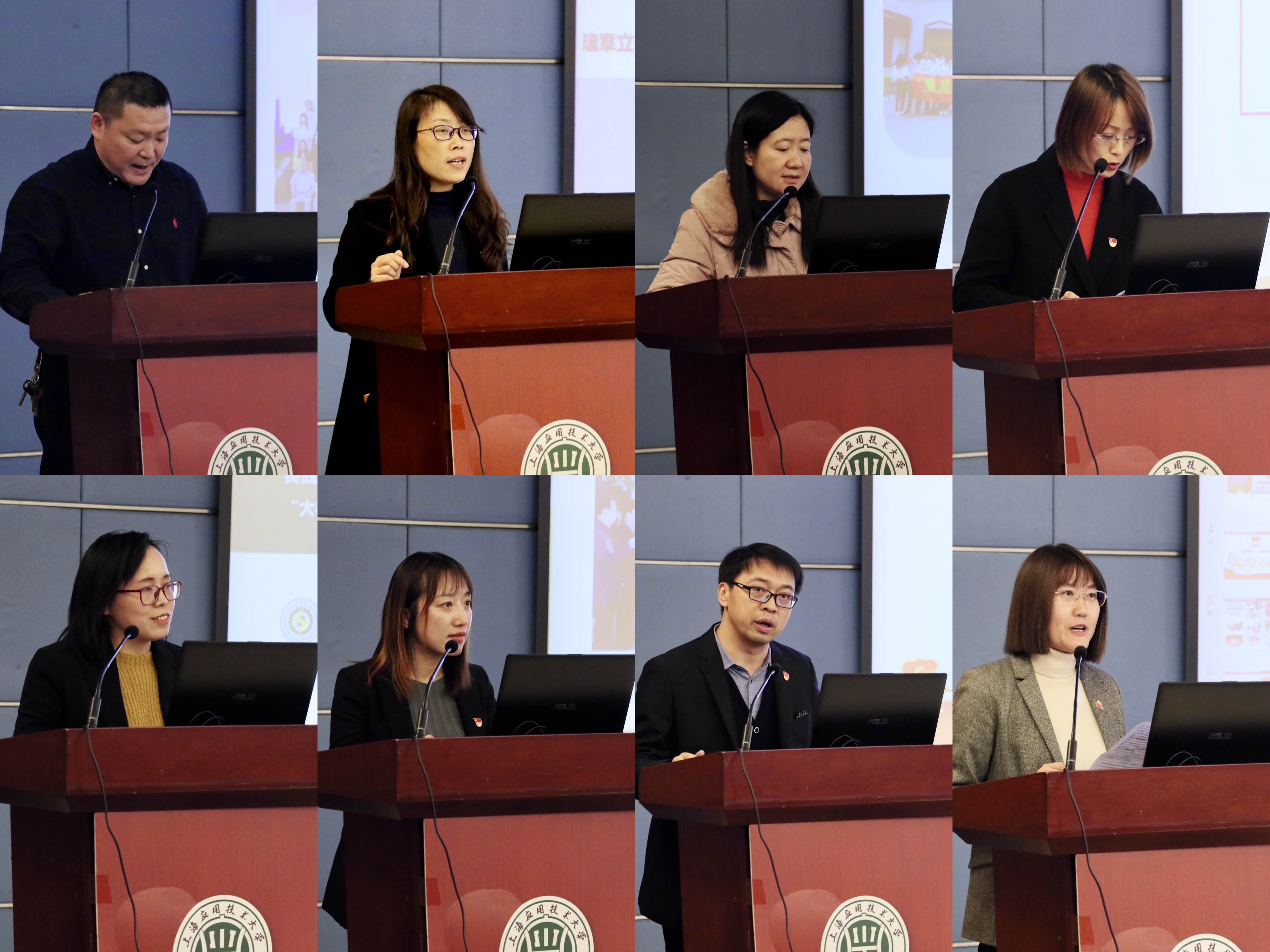 会上,各学院分管学生工作的副书记代表学院做汇报,他们立足立德树人根本任务,聚焦学院学风建设,围绕思政教育精品项目建设做了精彩汇报。各学院以庆祝建党百年为契机深入开展党史学习教育,学生工作坚持党建引领,深化思想强基夯实理想信念,重视知行合一提升实践能力,以创新守正的育人理念、校企协同的培养模式、依托平台的创新举措、以赛促学的建设抓手,探索疫情常态下学风建设的新举措。汇报凝练了多项学风与思政教育品牌建设成果,例如:“赛创学”全链条、“三式五堂”党建+思政平台、“百村百企”工程、“一核五维”模式等,体现了各学院重点突出、精耕细作、融合联动、协同育人,扎实推进大学生思政教育的显著成效。