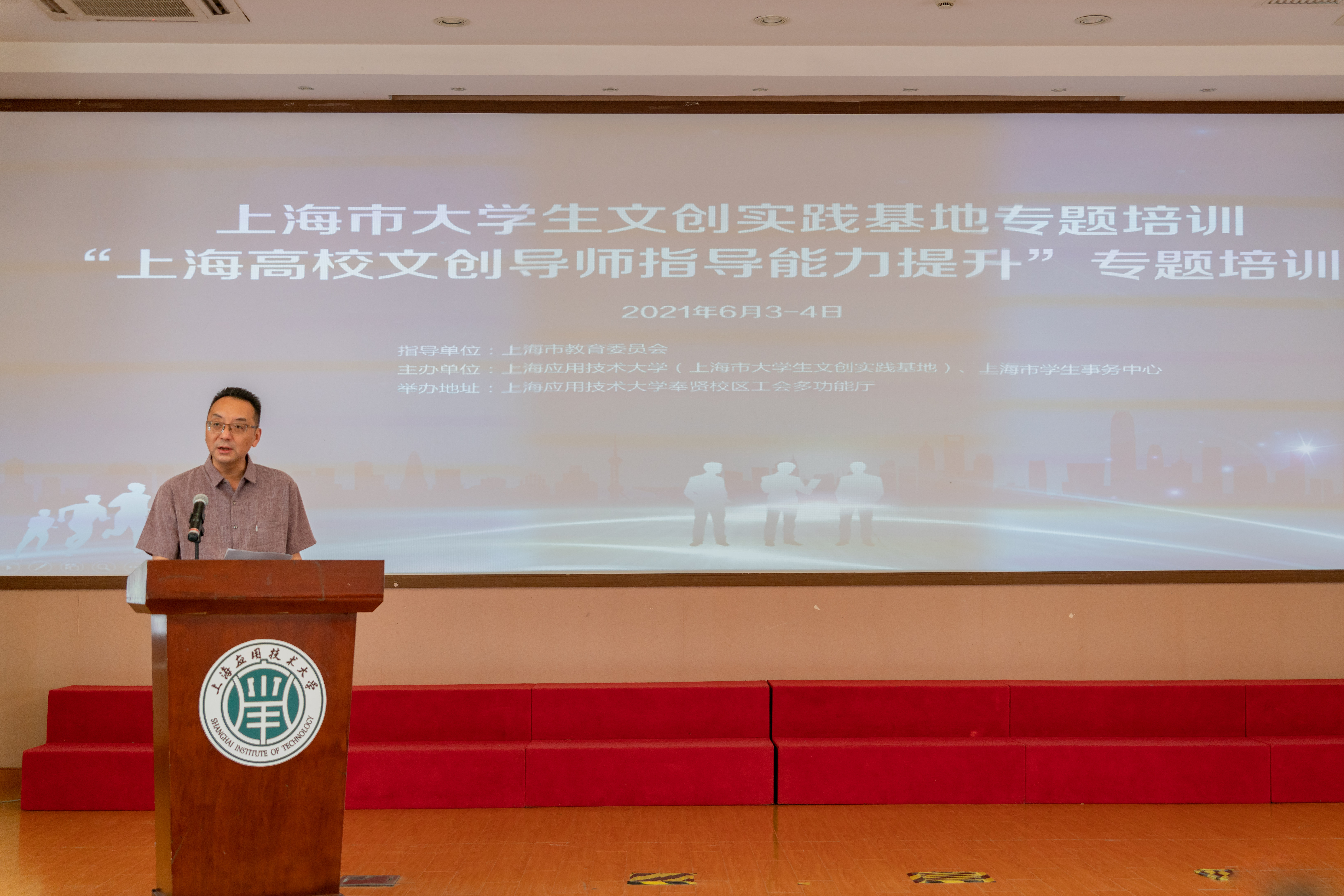 为深入贯彻落实党的十九大关于文化和教育事业改革发展的决策部署,实施《上海市文教结合三年行动计划(2019-2021年)》,2021年6月3日,“上海高校文创导师指导能力提升”专题培训在上海应用技术大学正式开班,来自上海23所高校的51位文创指导老师汇聚一堂,共同开启为期2天的文创导师指导能力提升专题培训。本次培训由上海市教委指导,上海市大学生文创实践基地(上海应用技术大学)和上海市学生事务中心共同举办。