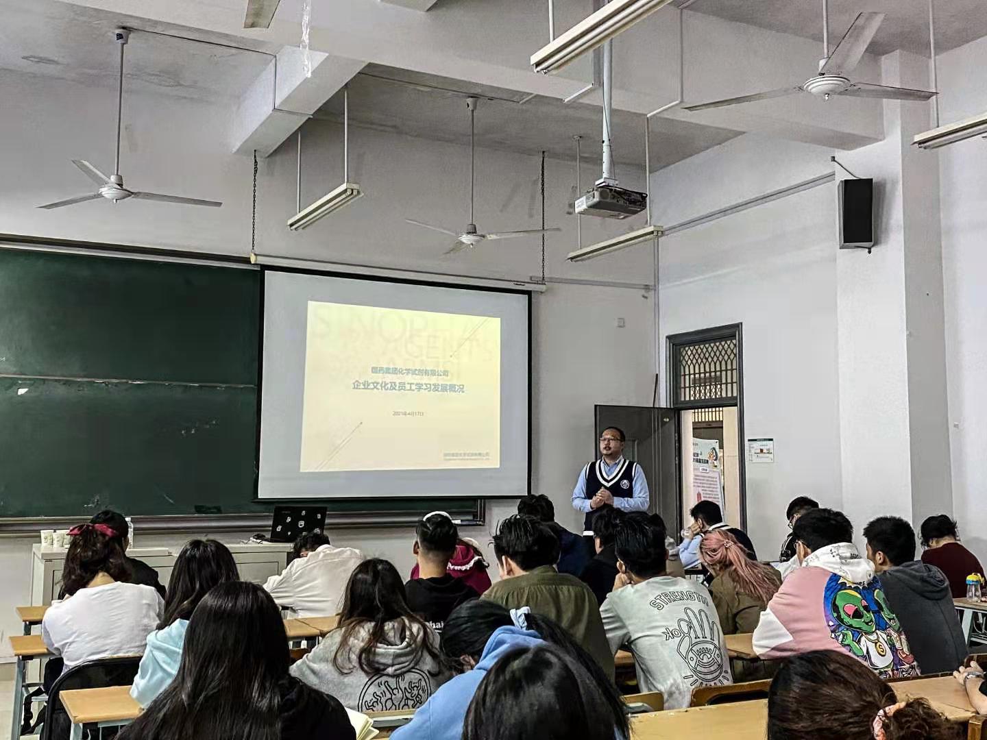 国药试剂市场部产品经理王光杰用丰富的现实案例为同学们讲述了实验室安全的重要性及国药试剂的一系列生产链;销售总监王纪宗介绍了销售在化学领域的作用,帮助同学们通过几个问题深刻理解了销售的意义;人力资源部培训主管田卉为同学们介绍了国药试剂的企业文化,展现了公司成熟的体系,拓宽了同学们的眼界;招聘负责人朱殷杰为在场同学答疑解惑。讲座结合大量实例分享了国药试剂应对一些紧急事件的处理心得,重点提到了危化品使用管理规范“五双原则”:双人保管、双锁、双台账、双人收发、双人领用。讲座贴合实际,拓宽了同学们的视野,有助于同学们开启职场之旅。