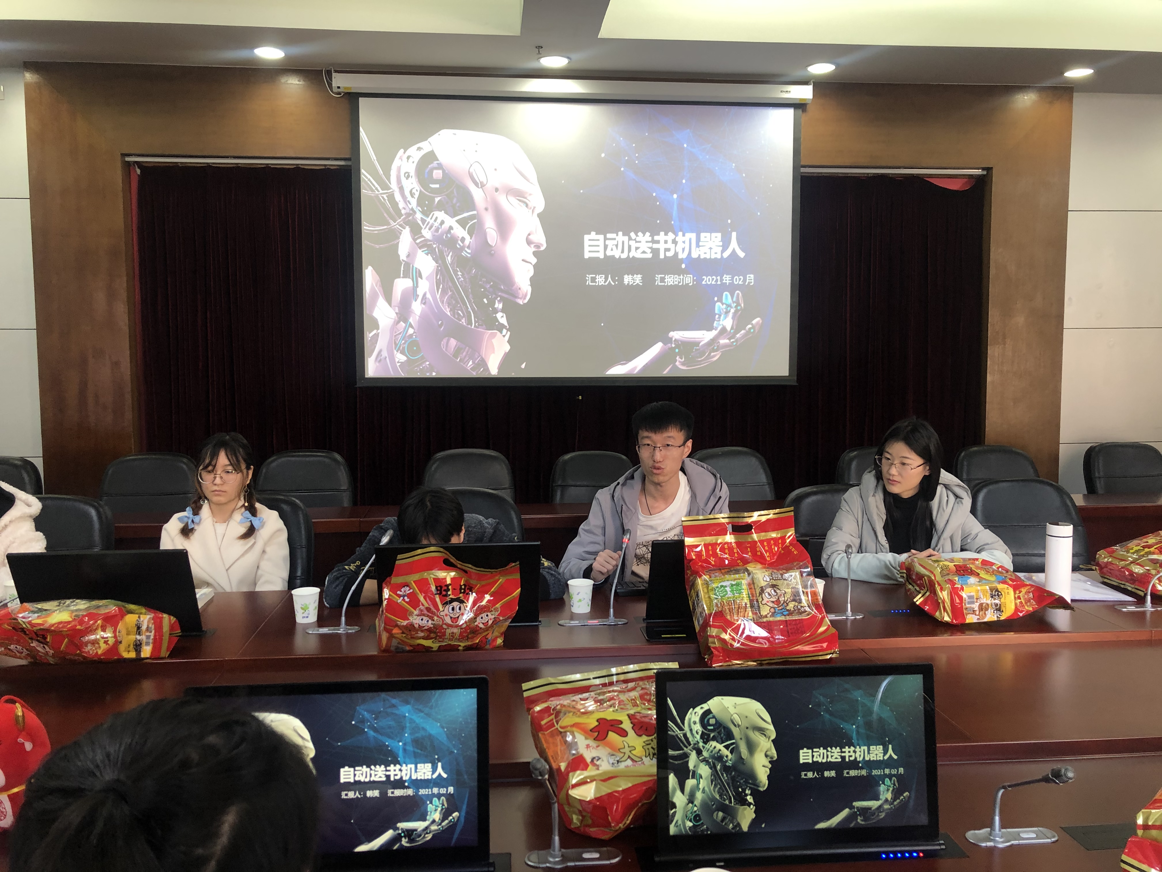 机械学院研究生韩笑为大家介绍了大学生创新创业项目—自动送书机器人的原理与实践,这一项目采用激光雷达测距、GPS定位、超声波模块等传感器,利用伺服电机驱动的机器人,帮忙借书、还书,更加方便师生借、还书,同时在疫情期间尽量避免人与人之间的接触。机械学院研究生张江从微流控平台搭建、微流控机理、微流控管道结构等方面介绍了微流控技术的优点,并通过剪切力、避升力、萨夫曼力、马格努斯力对粒子在流体中的影响机理讲解了此项技术当前的发展情况。经管学院研究生路玉莹,和大家分享了常用的文献检索技巧,演示了英文文献的检索方式,介绍了常用文献处理软件。科技创新学术沙龙活动的举办营造了良好的学术氛围,进一步增进了留校学生之间的了解与沟通,激发同学们学习和科研的热情。大家都感觉收获良多。