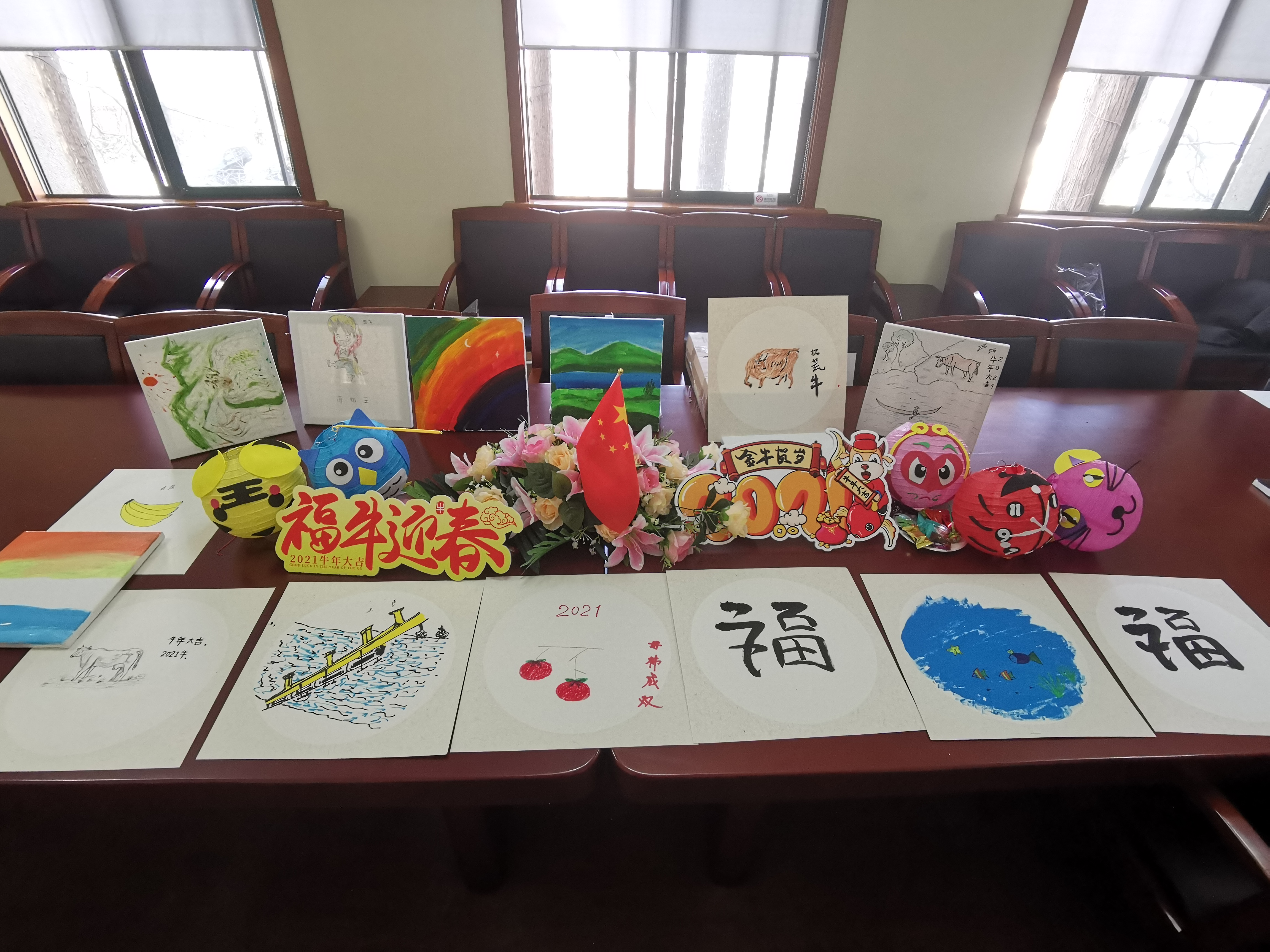二十多件即兴创作展现了同学们昂扬向上、积极乐观的精神风貌,并在画画和手工制作的过程中享受了艺术创作的快乐,抒发了对祖国的热爱、对家乡的思念和对亲人的牵挂。