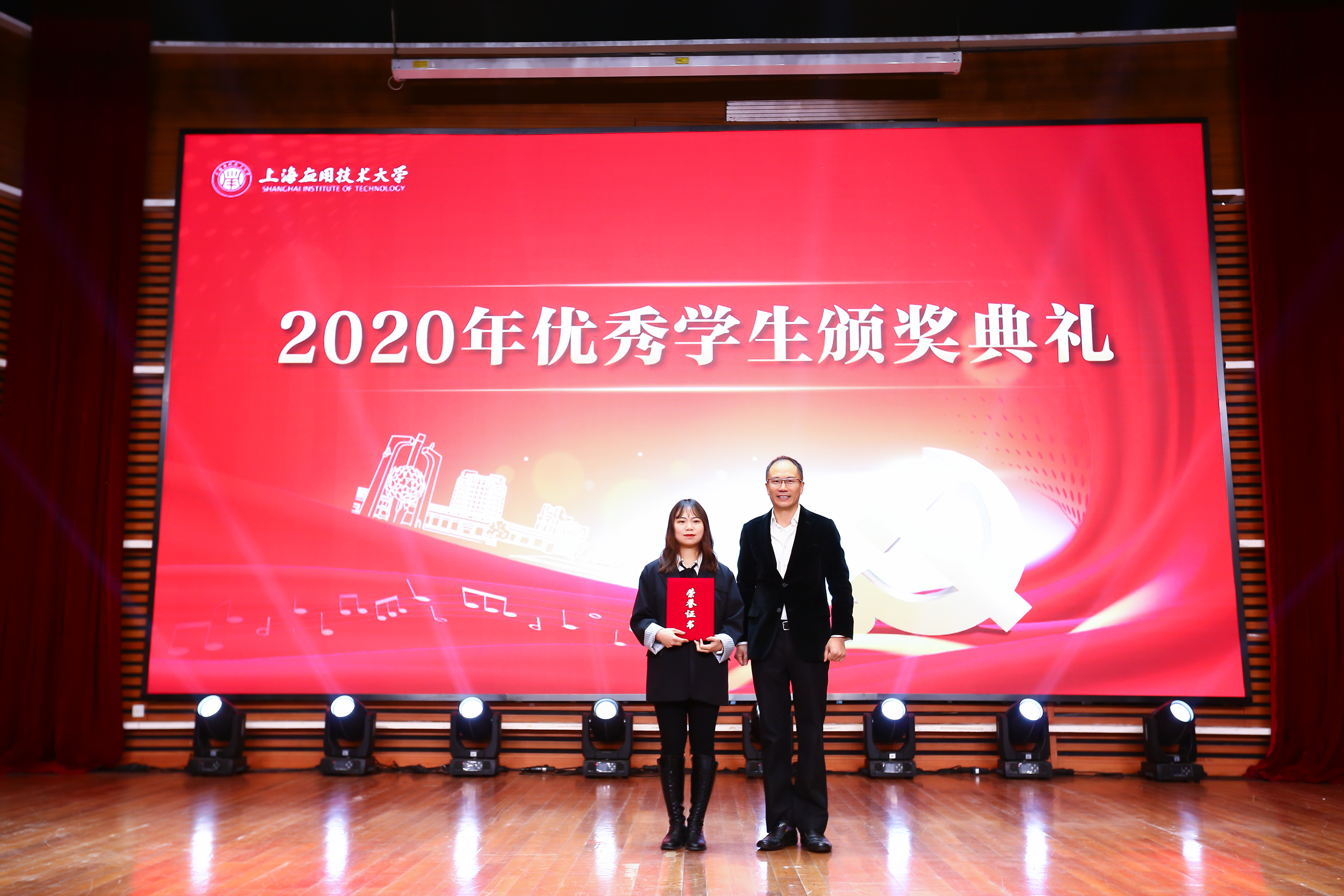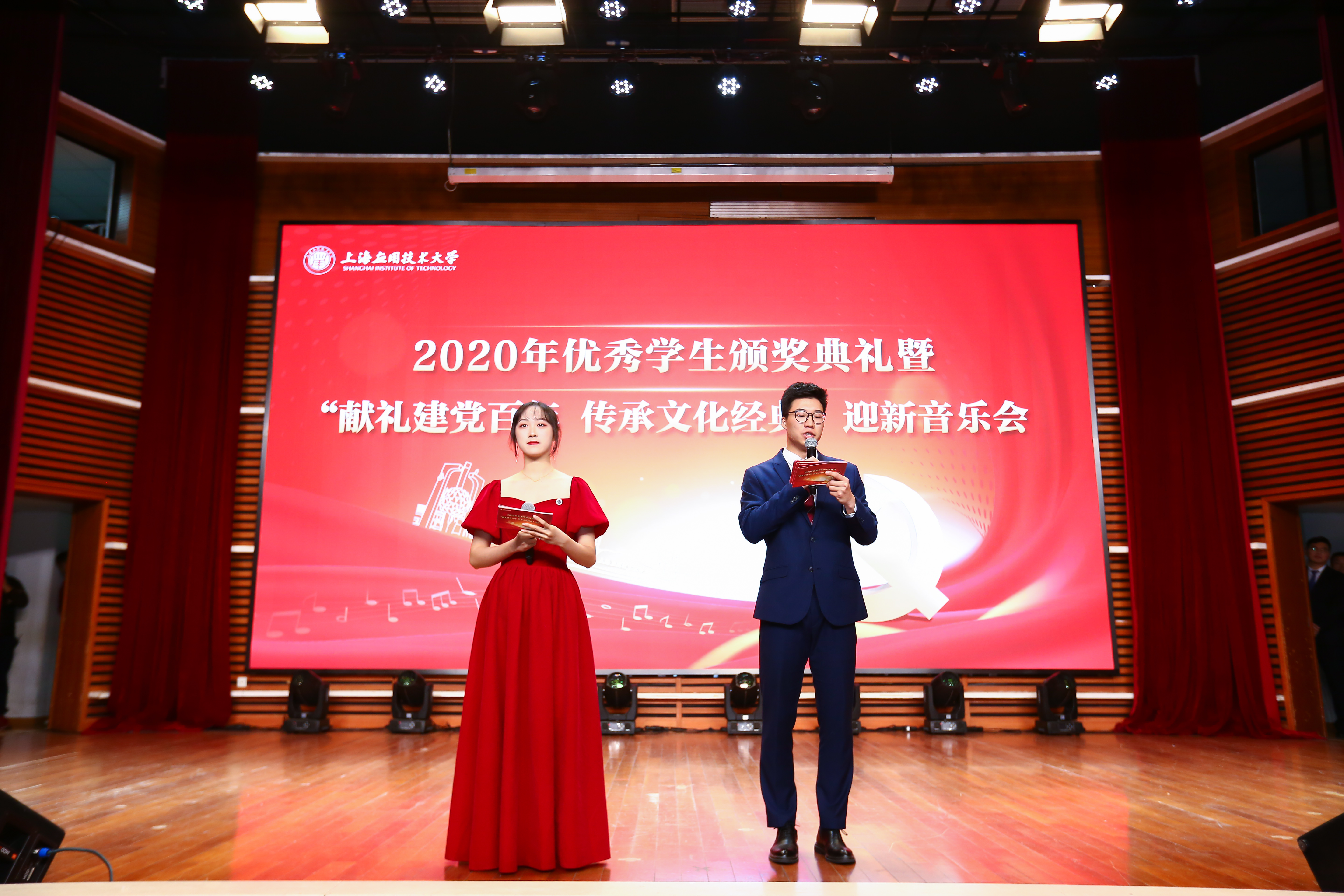 12月25日,上海应用技术大学隆重举行2020年度优秀学生颁奖典礼暨“献礼建党百年 传承文化经典”迎新音乐会。校党委副书记宋敏娟、校党委副书记、纪委书记何星海、副校长毛祥东、校党委常委、党委宣传部部长杨明和学校各职能部门负责人、各学院党组织书记,获奖学生代表以及现场观礼学生齐聚一堂,共同见证这一高光时刻。
