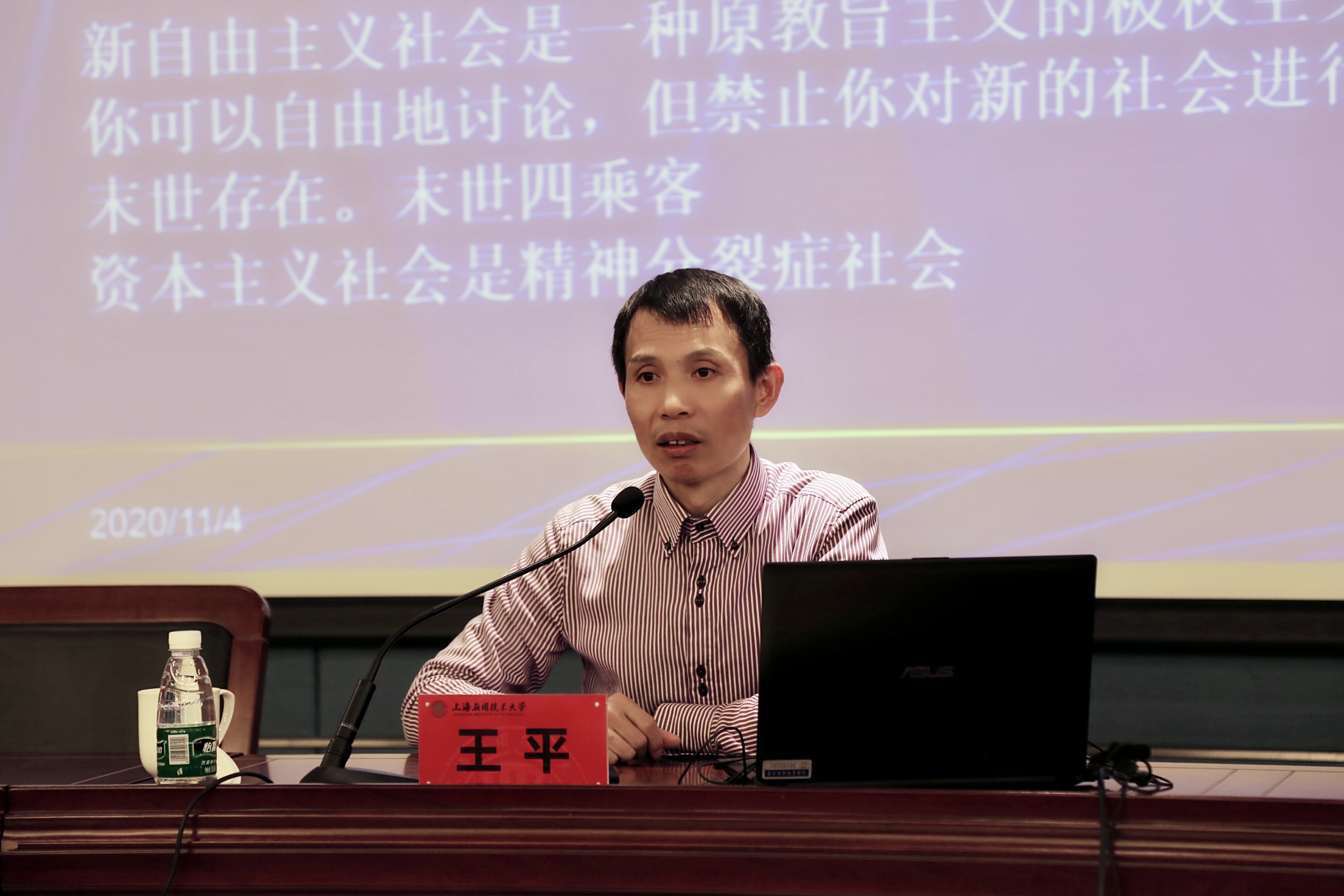 2020年11月4日下午,在奉贤校区行政楼117报告厅党委学生工作部举办2020年辅导员论坛专题报告会。同济大学马克思主义学院副院长王平教授应邀作《西方治理困境与中国治理方略》专题报告,党委学学生工作部部长袁翔主持报告会,各学院学生工作负责人,全体专兼职辅导员,学工部与校团委全体人员参加报告会。