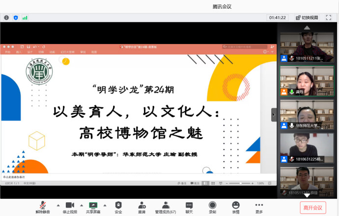7月4日上午10点,华东师范大学的庄瑜副教授为我校学子开展了“以美育人,以文化人:高校博物馆之魅”的讲座。本场沙龙基于高校博物馆,通过文物传递历史智慧,激发学生的民族自豪感和文化自信,提升对于中华优秀传统文化、革命文化和社会文化的兴趣,使学生们具有热爱和崇敬之心。
