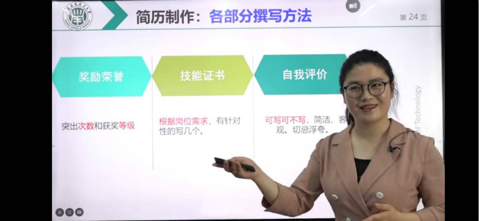 此次校内赛作为市赛预演,流程标准完全按市赛执行。经过选手主动报名和初筛,共有13名就业创业指导教师进入决赛环节。比赛中,各位参赛教师以就业与创业指导课程中经典知识点作为主题,在简短的时间内运用PPT、短视频等现代教育技术,借助多功能白板、提词器等新媒体教具,充分展示了个人教学风采和对所讲核心知识点的深刻理解,课件制作精美,重点难点突出,较好地体现出“微格”教学的自我对照功能和示范推广效果。最终香料学院梁萍、计算机学院欧阳丹丹荣获一等奖,高职学院叶小金、外语学院王福、机械学院张启君、经管学院翟艾吟荣获二等奖,化工学院骆玉丽、经管学院刘媛、生态学院李钰荃、工创学院魏晋、信息化技术中心曲嘉、化工学院张越、经管学院朱秀荣获三等奖。