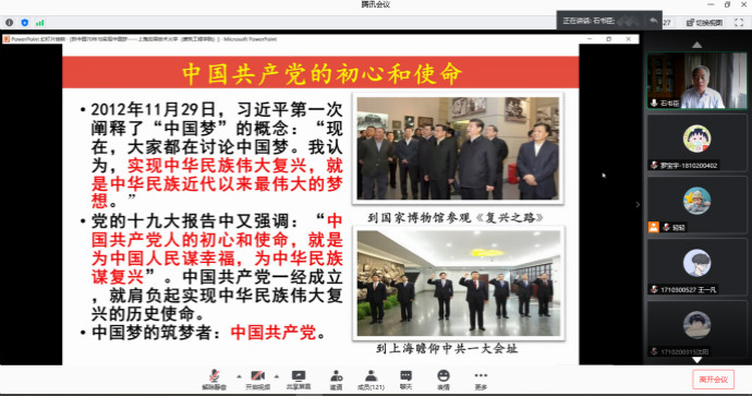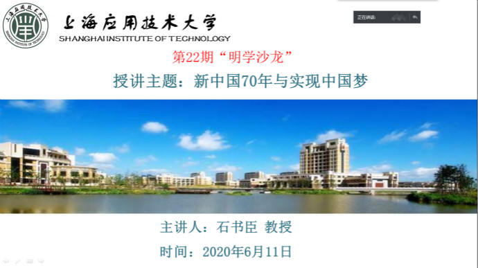 为深入推进 “四史”学习教育, 6月11日下午14:00,机械学院组织承办了以 “新中国70年与实现中国梦”为主题的第22期“明学沙龙”,沙龙通过在线网络会议的形式举行。会议特别邀请了上海师范大学马克思主义学院教授、思想政治教育研究所所长、博士生导师石书臣教授担任本次“明学沙龙”的主讲教授。