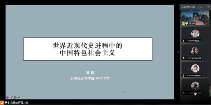 2020年6月22日18点,“明学沙龙”举办“四史”学习教育专题讲座:世界近现代史中的中国特色社会主义,复旦大学法学博士、上海社会科学院中国马克思主义研究所研究员冯莉应邀担任主讲,本期沙龙由电气学院承办。