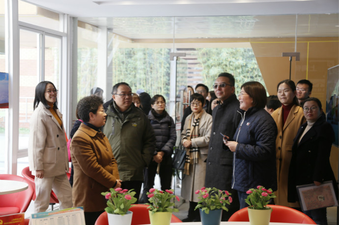 宋敏娟一行参观了上海师范大学徐汇校区的学生生活园区,走访了最新改造的东六、东七、东八学生宿舍,实地感受上海师范大学基于云平台与大数据技术、根据“围绕学生、关照学生、服务学生”工作理念而进行的东部生活园区的改造成果,园区打造掌上信息平台的智能化管理给大家留下了深刻的印象
