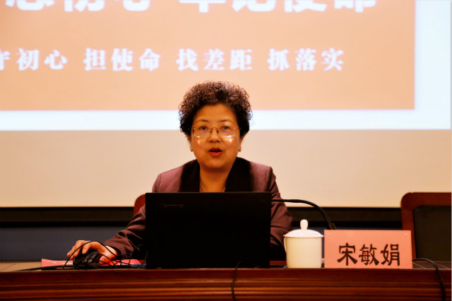 宋敏娟书记通过本次主题教育的调研,分析了学生工作目前的现状与问题。她肯定了近年来学工系统开展大学生思想政治教育所取得的各项成效,同时,也准确地指出了学生工作的痛点与难点,精准地分析目前学工系统领导干部、辅导员、学生党员所存在的问题,以及思政工作所面临的各类挑战。她指出,为中国人民谋幸福、为中华民族谋复兴是中国共产党人的初心与使命,那么,全心全意为学生服务就应该成为广大学生工作者为人民谋幸福的出发点与落脚点,成为大家的初心与使命。通过“不忘初心、牢记使命”主题教育,进一步强化四个意识、坚定四个自信,并坚决做到两个维护。