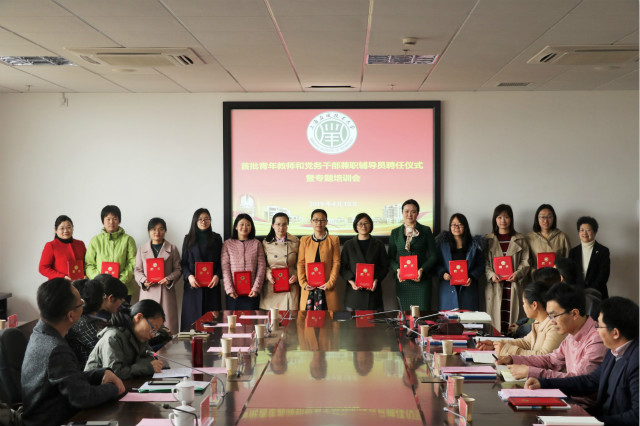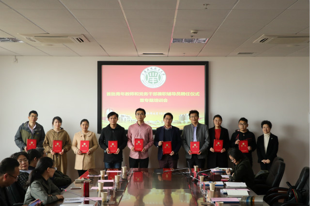 此次聘任仪式由党委学工部部长袁翔宣读首批青年教师和党务干部兼职辅导员名单,校党委副书记宋敏娟为全体兼职辅导员颁发了聘书。