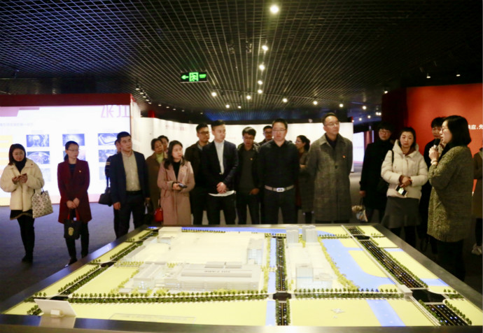 在张江科学城展示厅内,大家在讲解员的带领下、校友及张江科技园区AA创业加速器创始人张孝良先生的陪同下,首先了解了科学城的发展历程及规划建设情况,随后,大家一起参观了大科学设施、集成电路、航空航天、生物医药、创新生态等展区,这里集中展示了来自各领域的多个重大科技领先成果。
