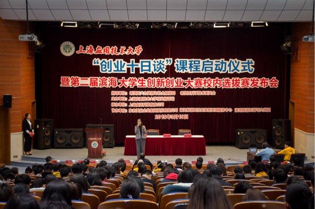 3月19日晚,由党委学生工作部、校创业指导站主办的校企共建创业教育课程“创业十日谈”启动仪式暨第二届滨海大学生创业大赛校内选拔赛发布会在图书馆B106报告厅举行。校党委副书记宋敏娟出席并致辞,共有来自课程共建企业、奉贤区人社局、东方美谷、海湾旅游区及海湾三校选修此次课程的学生近500人参加此次活动。