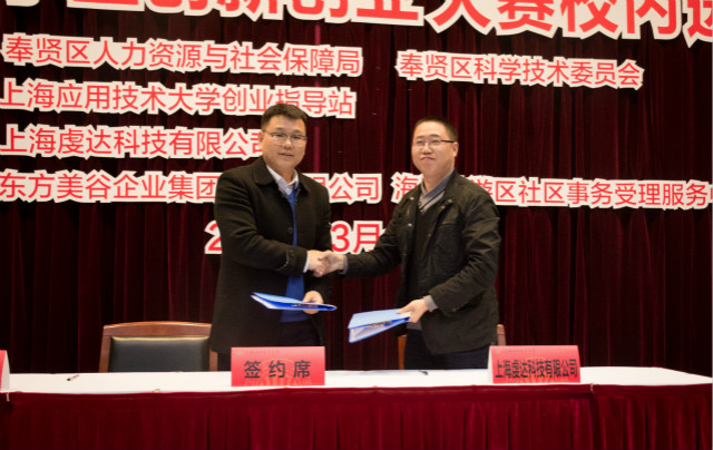 仪式现场,校创业指导站与上海虔达科技有限公司有限公司签署了创业教育战略合作协议,双方承诺后期在线下指导、赛事培训、创业服务、表彰激励等环节协同合作,共同营造高校创业新生态。仪式还向我校外聘创业指导教师代表颁发了聘书,并正式发布第二届滨海大学生创业大赛赛程安排。