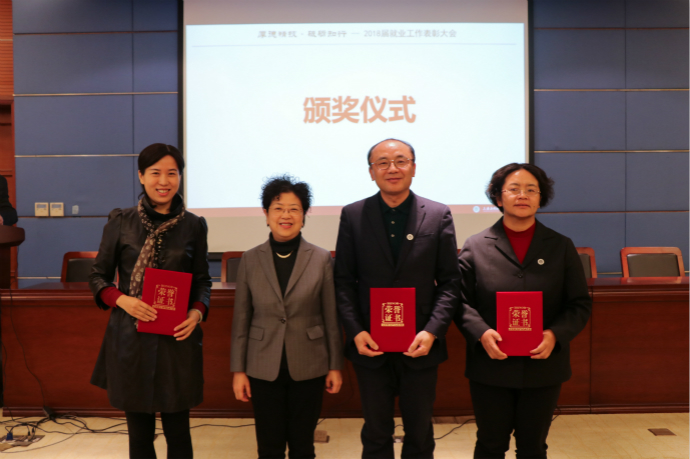 会议表彰了2018届就业工作先进单位、积极分子、先进个人,并邀请上海铁路局人事处李玉炜副处长、就业先进单位代表工程创新学院常务副院长徐兵老师、就业工作先进个人代表人文学院朱敏老师、以及就业工作积极分子代表化工学院辅导员杨娜老师上台发言,充分交流了促进就业工作的先进经验和做法。