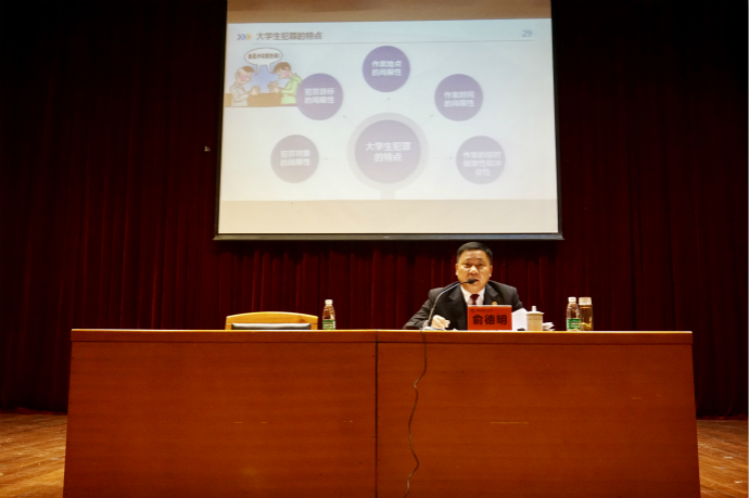 12月10日晚,上海市奉贤区人民检察院副检察长俞德明应邀走进我校,为学生讲授主题为“本市大学生犯罪典型案例及预防对策”的法治教育讲座。我校300多名学生前来聆听。