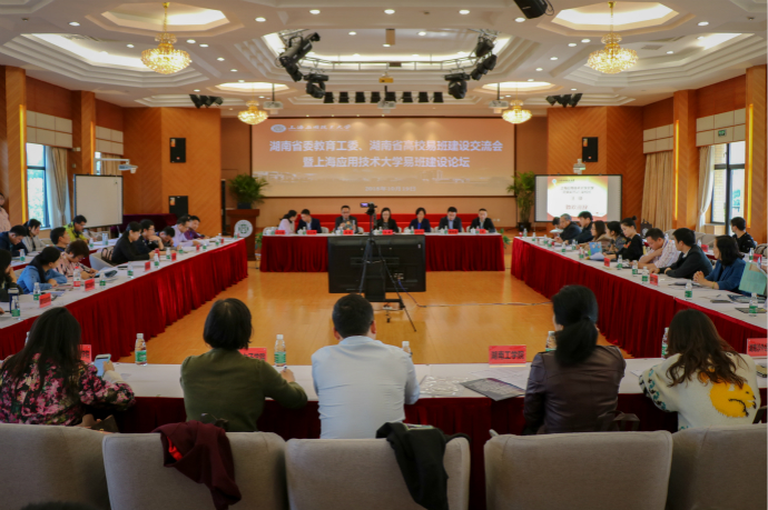 首先,王瑛致辞对湖南与会嘉宾前来我校交流考察表示热烈欢迎,介绍了学校的办学情况和易班建设概况。随后,袁翔介绍了我校学生工作概况,并以上海市教学成果奖——365青年成长计划为例展示了我校网络思政教育工作特色。接下来,学工部易班发展中心任玉英以时间为轴详细介绍了学校易班建设历程及取得的成果。湖南易班发展中心主任、湖南教育电视台副台长蓝斌展望了湖南高校易班发展的前景。最后,湖南省委教育工委刘书华总结交流会,对我校易班建设取得的经验和成果表示赞许,对我校接待工作表示感谢。